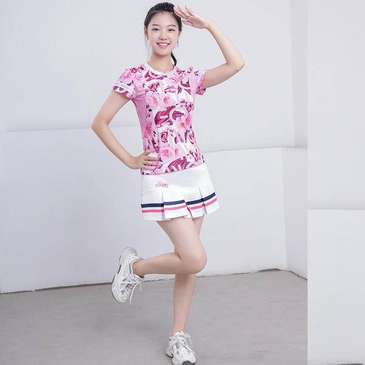 新款粉色羽毛球服速干上衣休闲套装女白色裙运动短裙夏