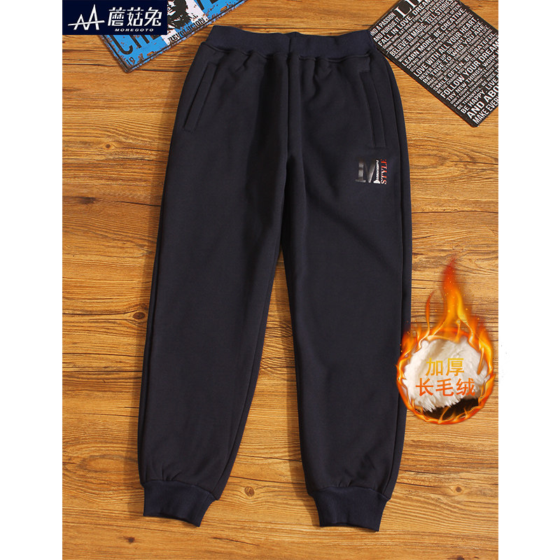 胖童加绒裤子保暖裤冬季青少年男孩中大童棉裤加厚一体绒加肥加大