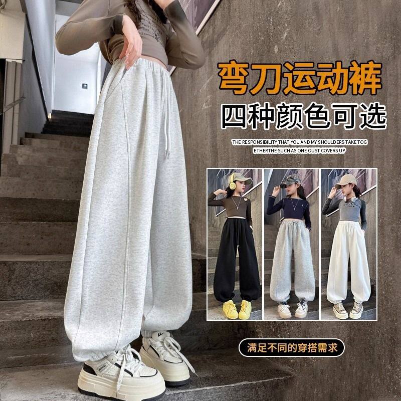 女童裤子春装2026新款儿童春季休闲卫裤洋气女大童黑色运动裤春秋