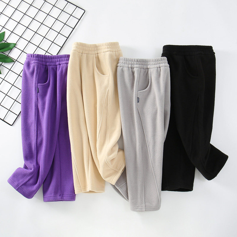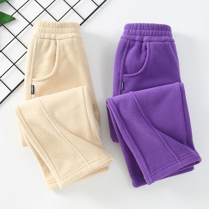 儿童摇粒绒裤子2025中大童男女童春秋冬季一体薄绒休闲裤直筒卫裤