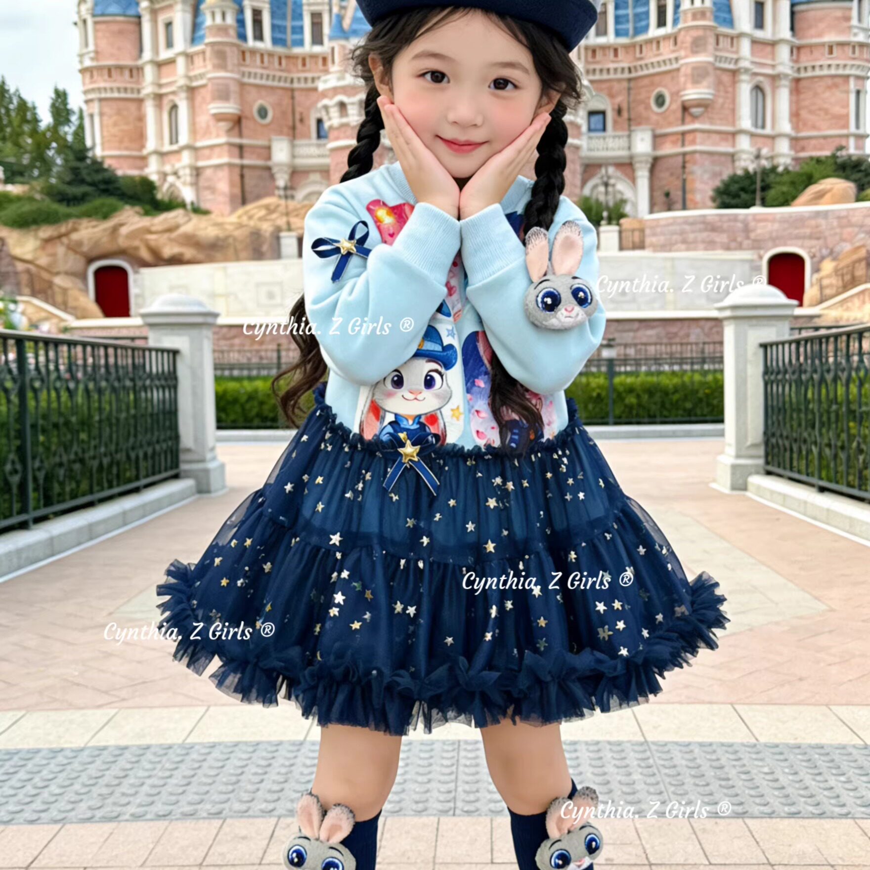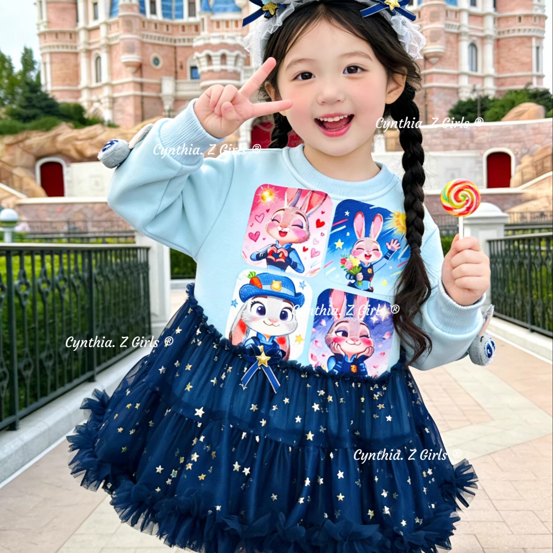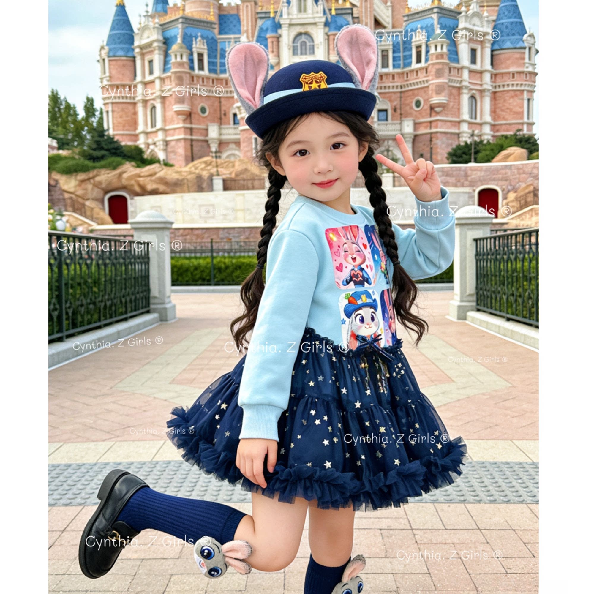 MN女童甜酷风兔子警官公主裙秋冬款洋气女孩生日连衣裙朱迪卫衣裙