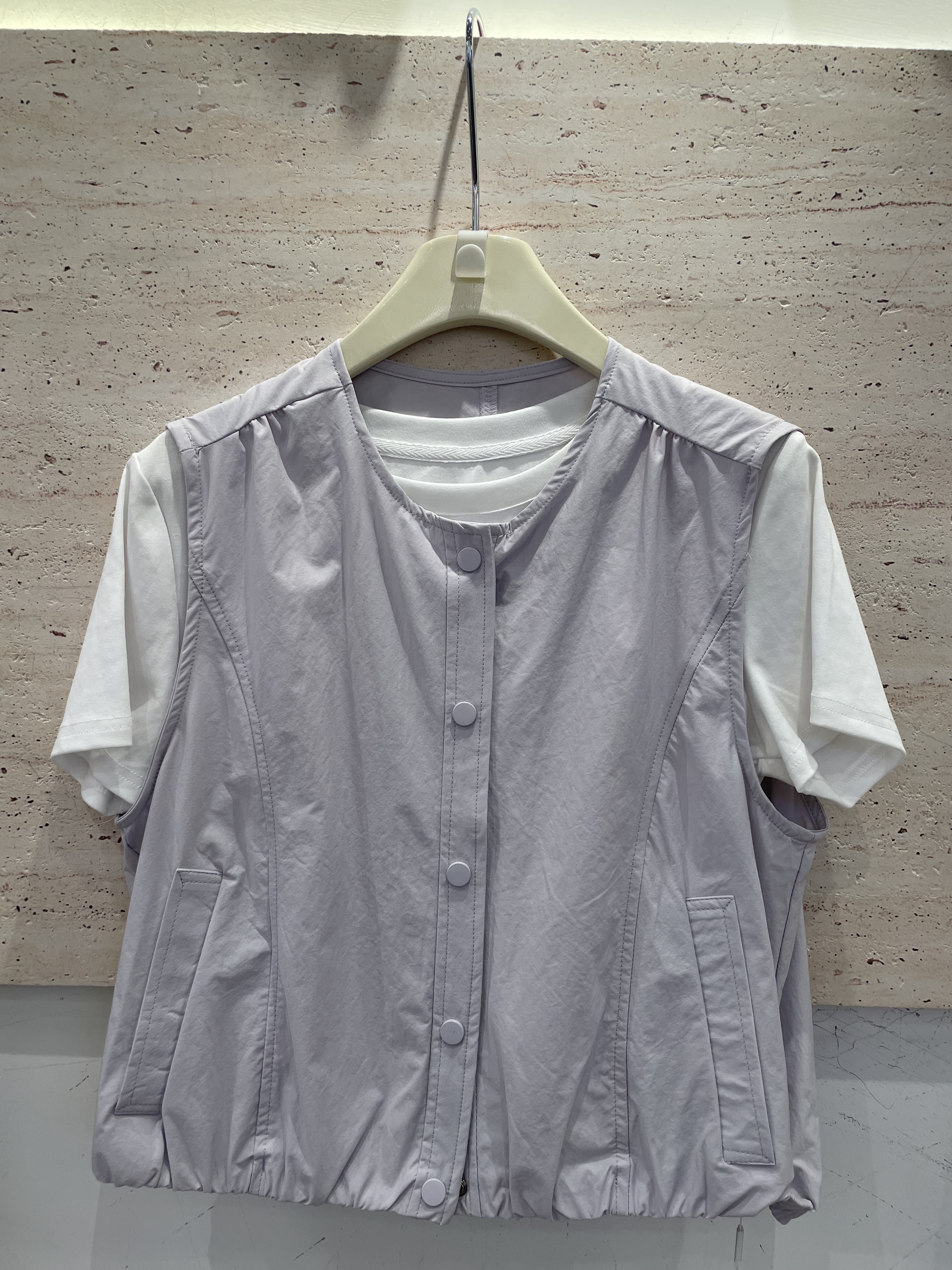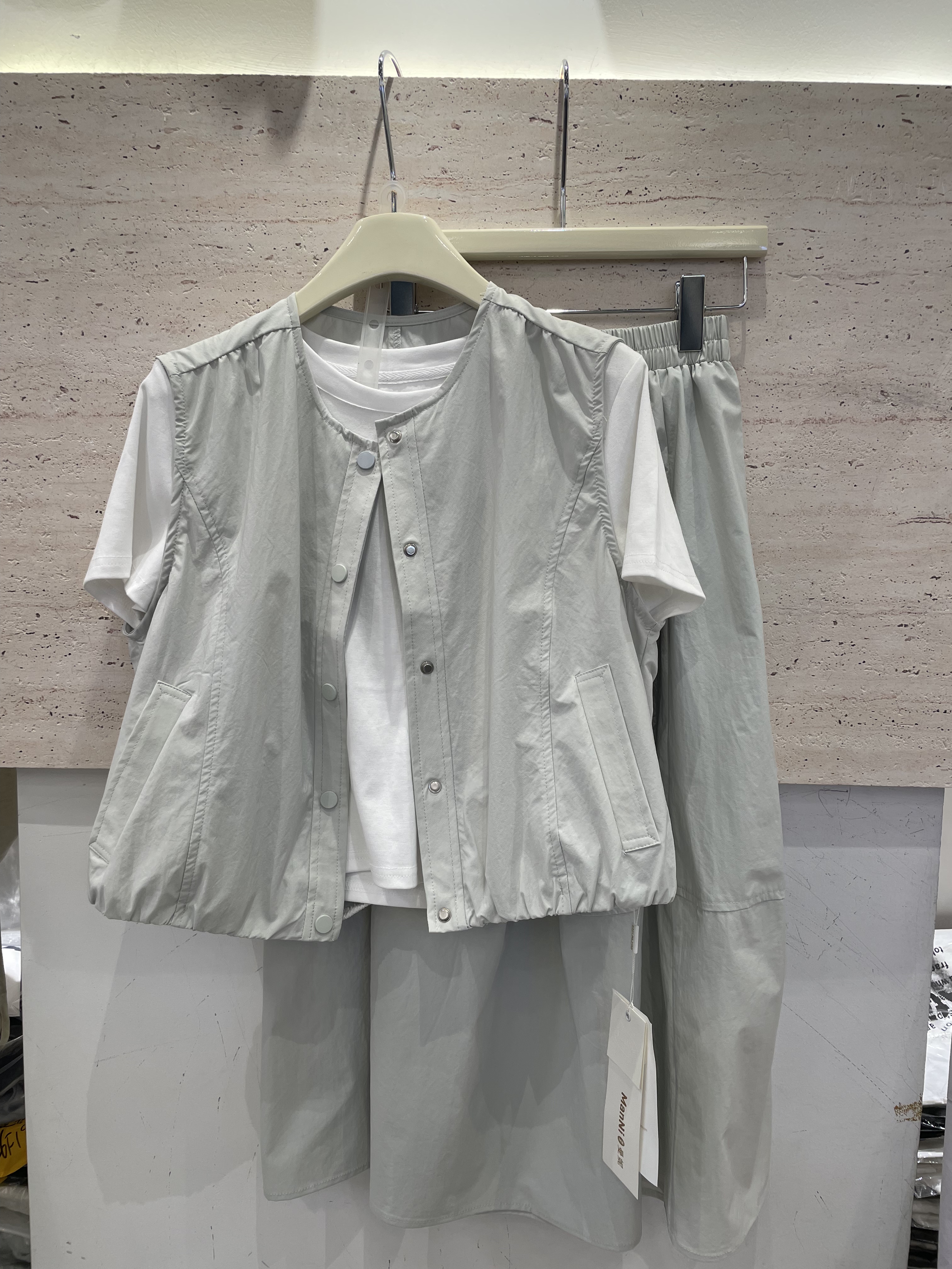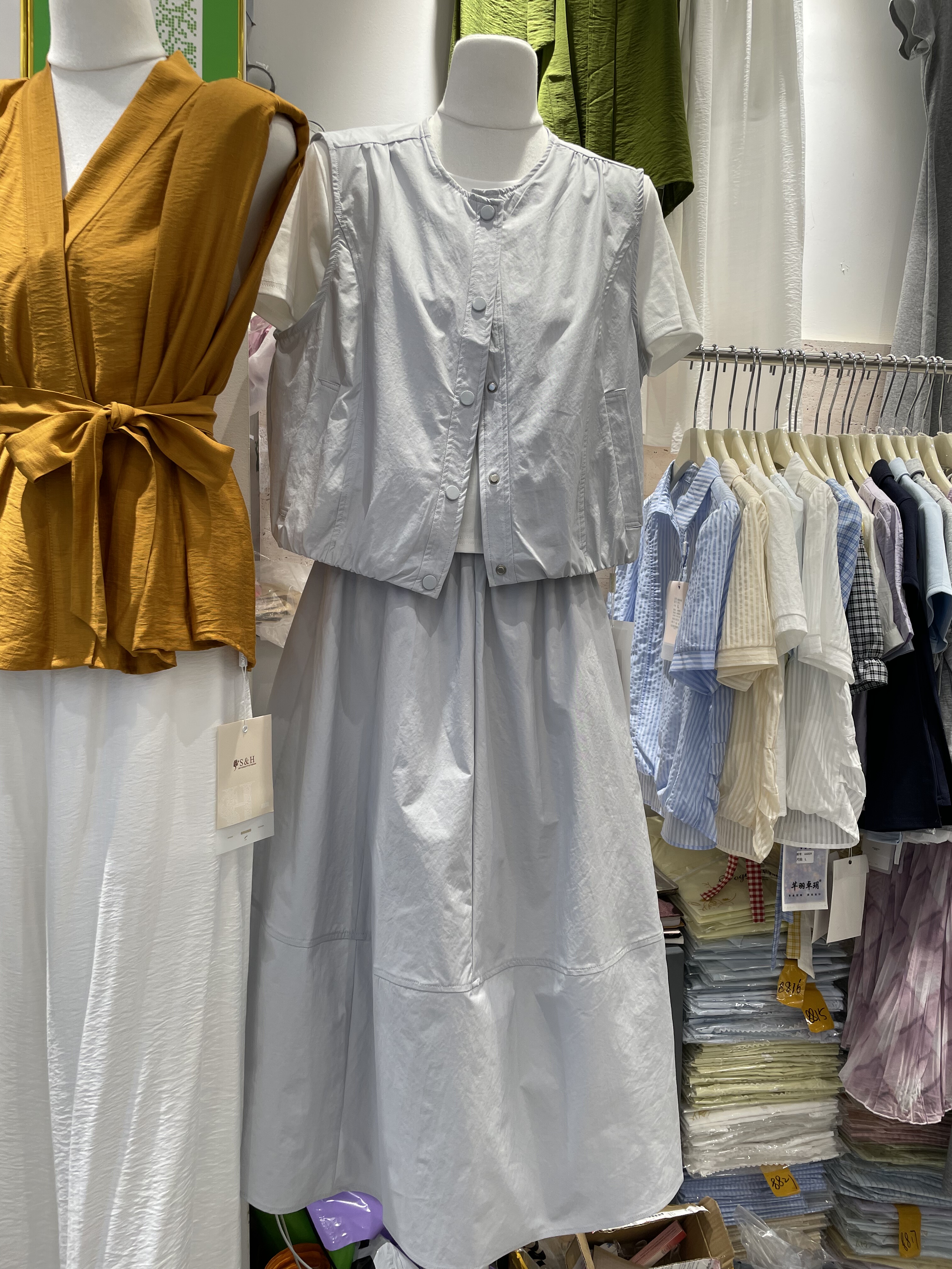 曼妮26F70夏时尚马甲+白色T恤+花苞半身裙宽松百搭减龄休闲三件套