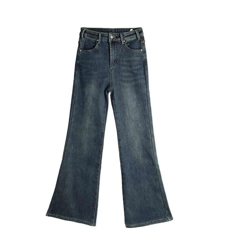 加绒微喇牛仔裤女2026新款冬季高腰显瘦小个子修身不贴腿喇叭裤子