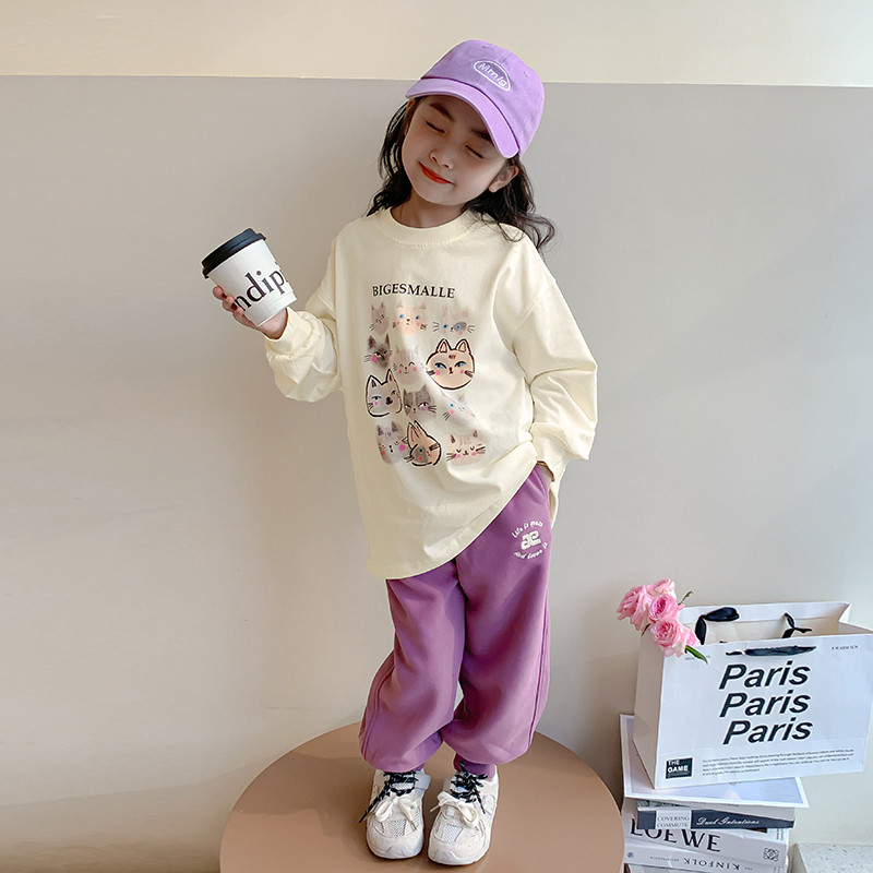 女童长袖t恤春季2026新款女孩休闲宽松上衣中长款春装儿童打底衫