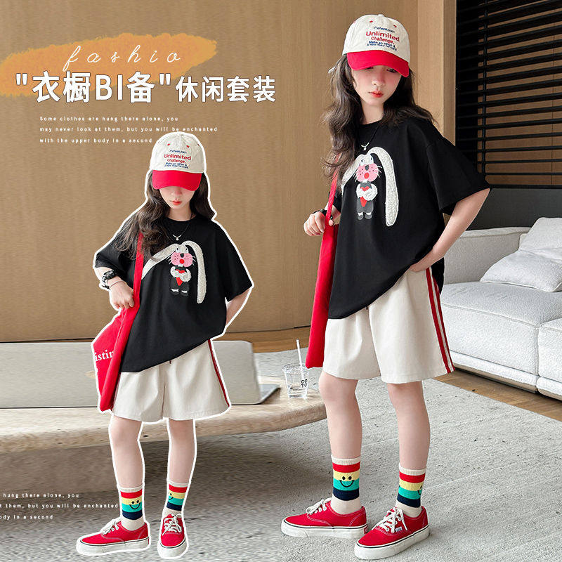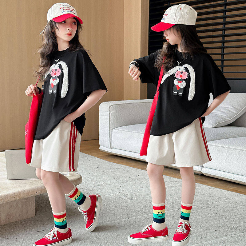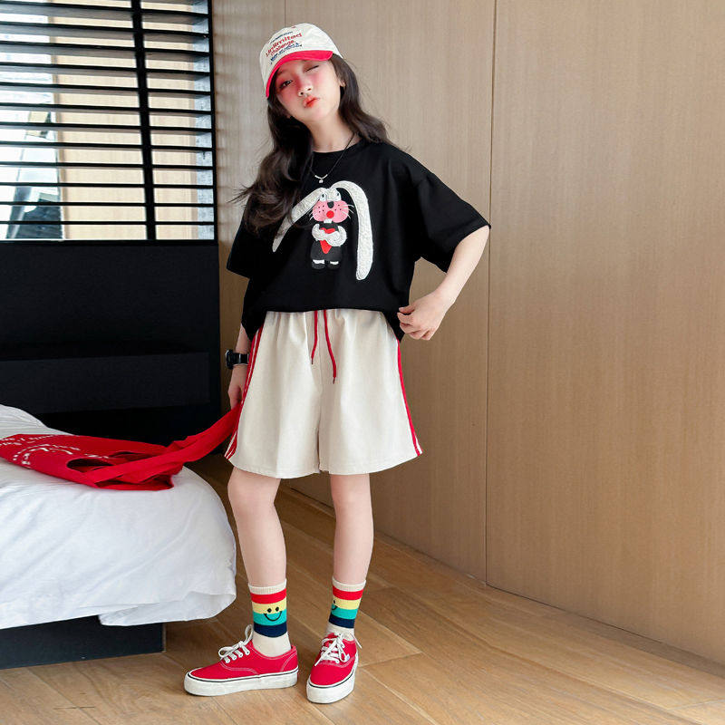 中大女童夏季短袖T恤女孩半袖儿童洋气时髦纯棉夏装潮P上衣服8岁9