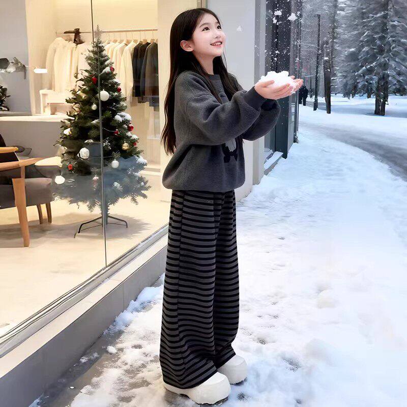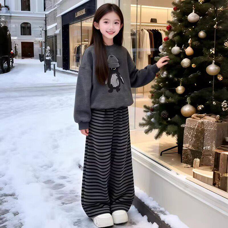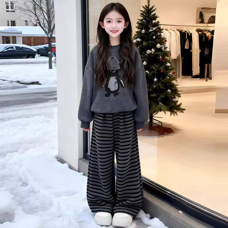 女童企鹅卫衣套装春秋2026新款儿童条纹裤子韩版女孩休闲两件套潮