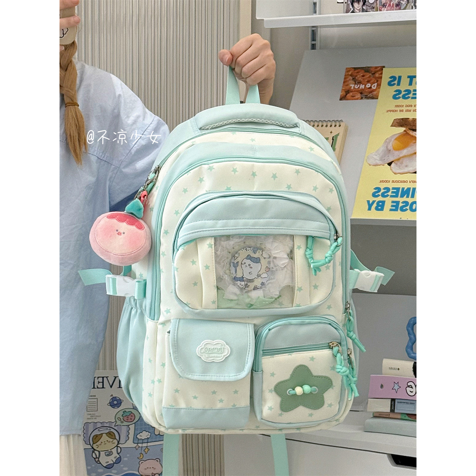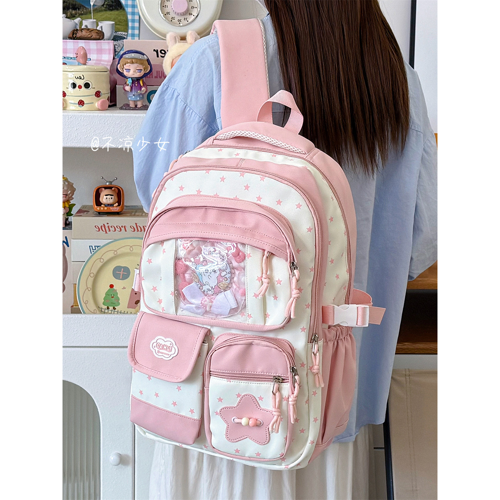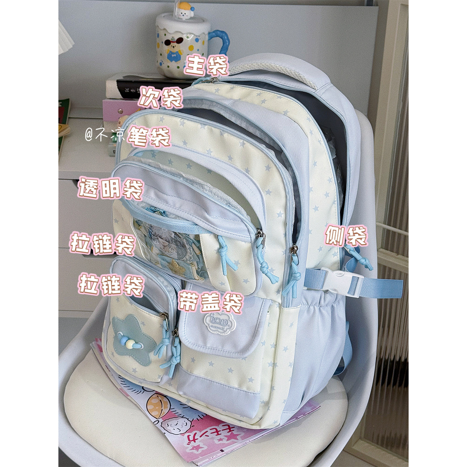 星星初中生书包可爱小清新多隔层高中学生大容量双肩背包痛包娃包