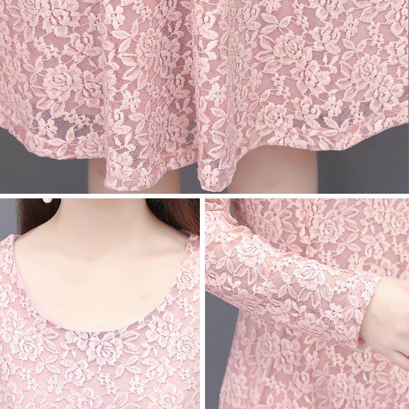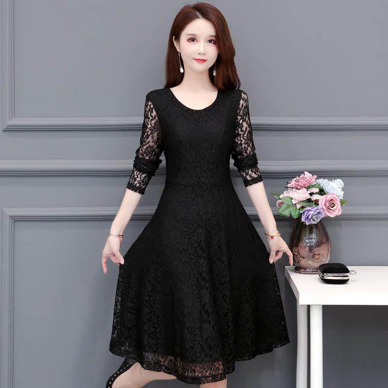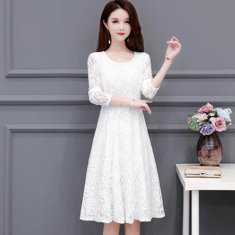 2025新款韩版春秋圆领连衣裙长袖修身中长款大摆裙显瘦收腰内搭裙