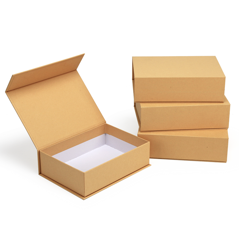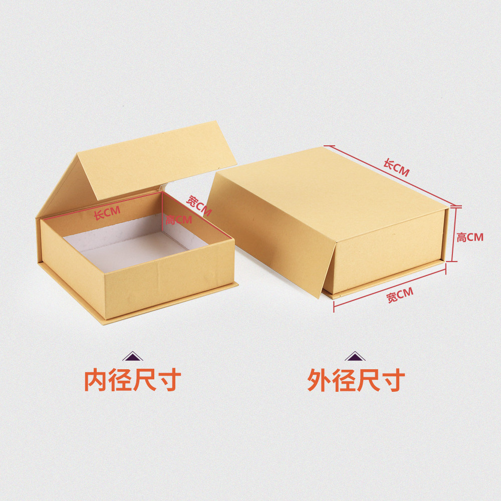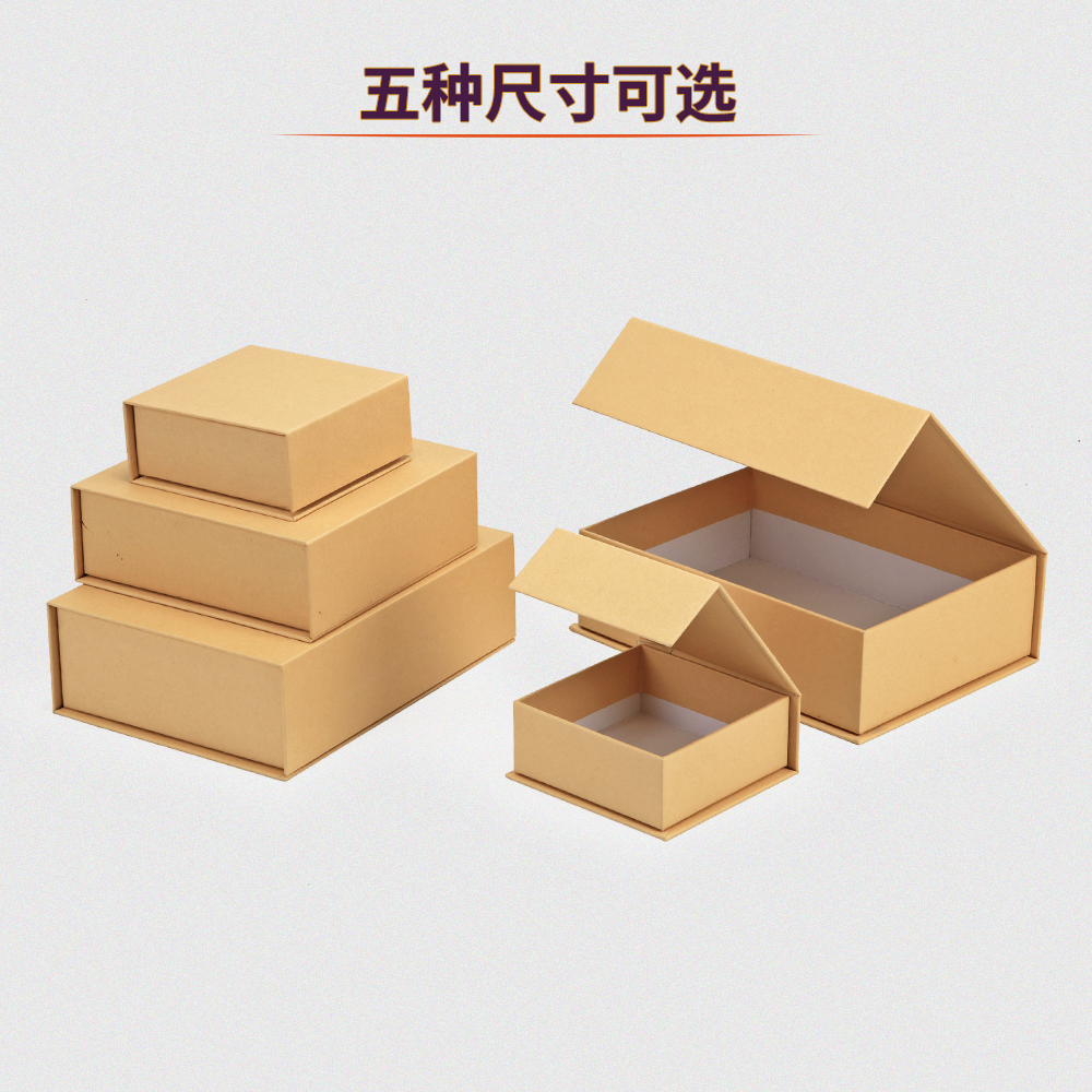 本色牛皮纸纸盒书本开合式礼品收纳盒磁铁磁扣礼盒现货空白可印刷