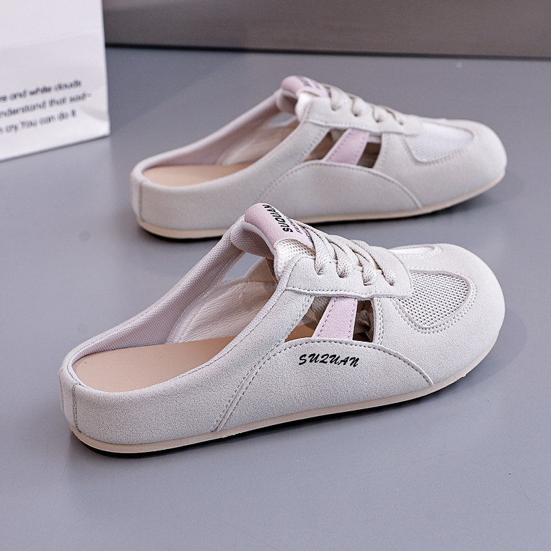 2026夏季新款半拖网面小白女鞋外穿懒人包头爆款百搭平底凉拖鞋子