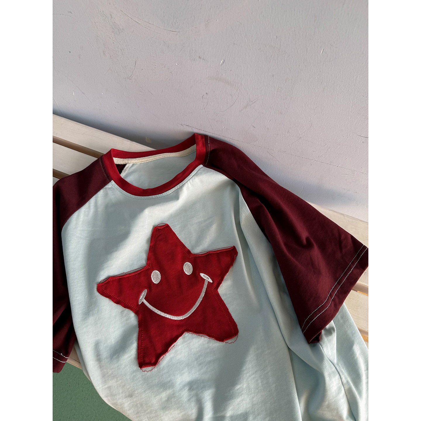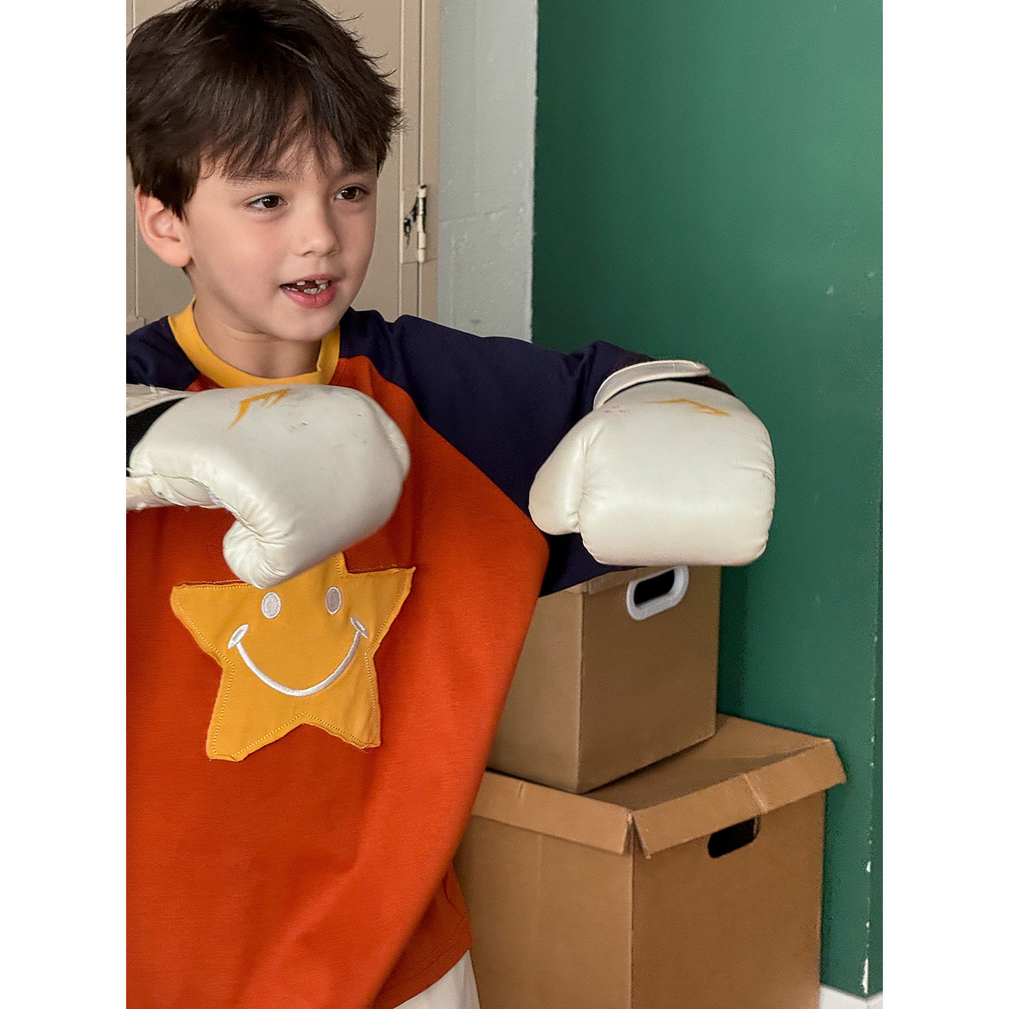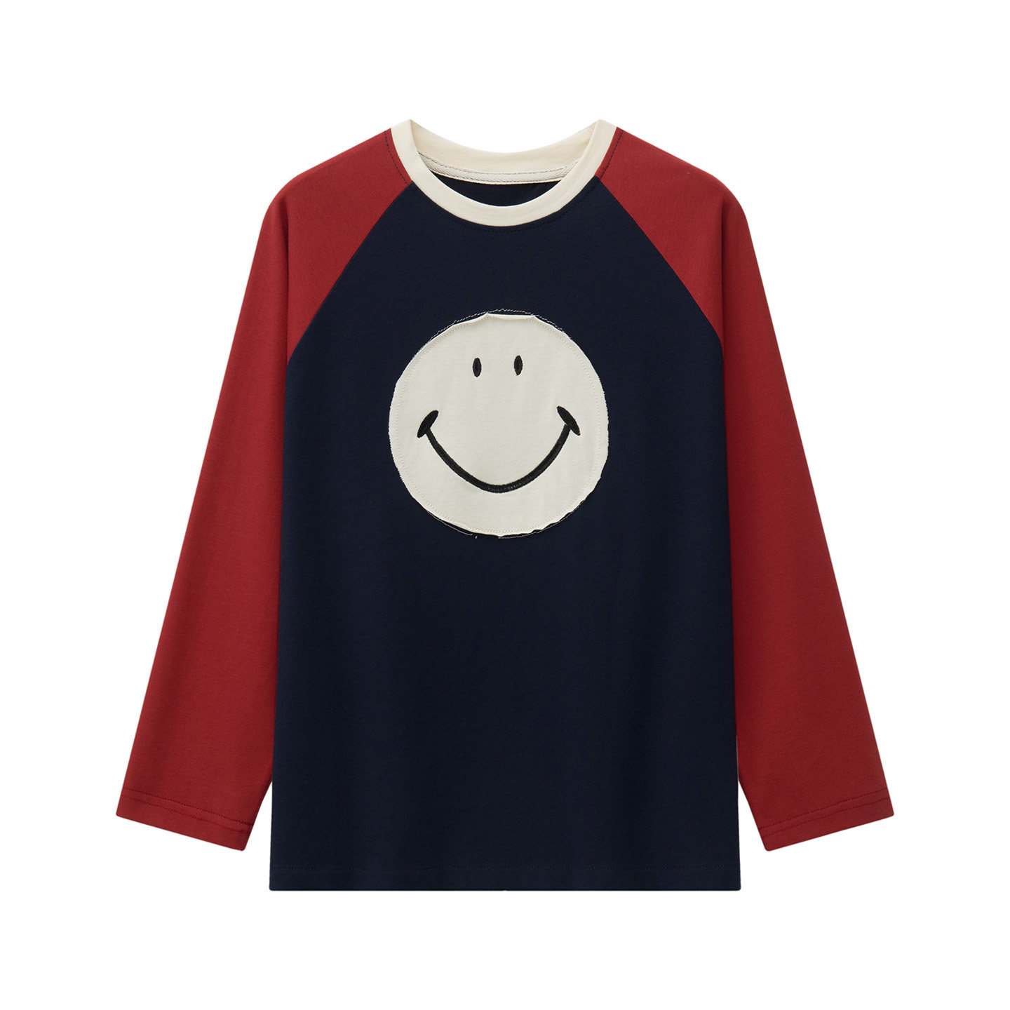 虾酱麻麻男童纯棉长袖t恤春装2026新款笑脸上衣儿童装插肩袖体恤
