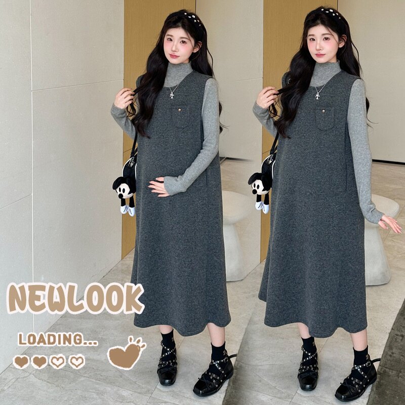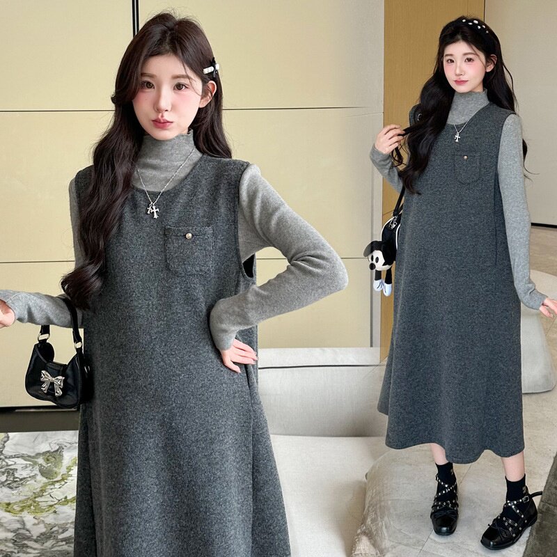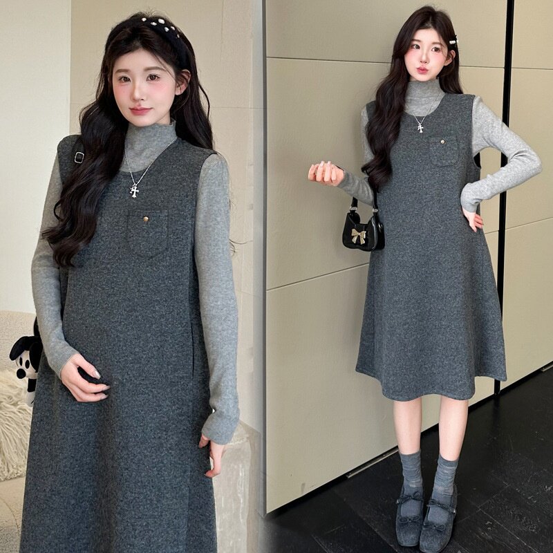 孕妇装2025秋冬新款韩版时尚2件套毛呢孕妇连衣裙