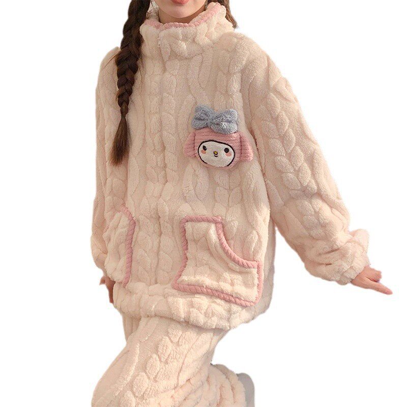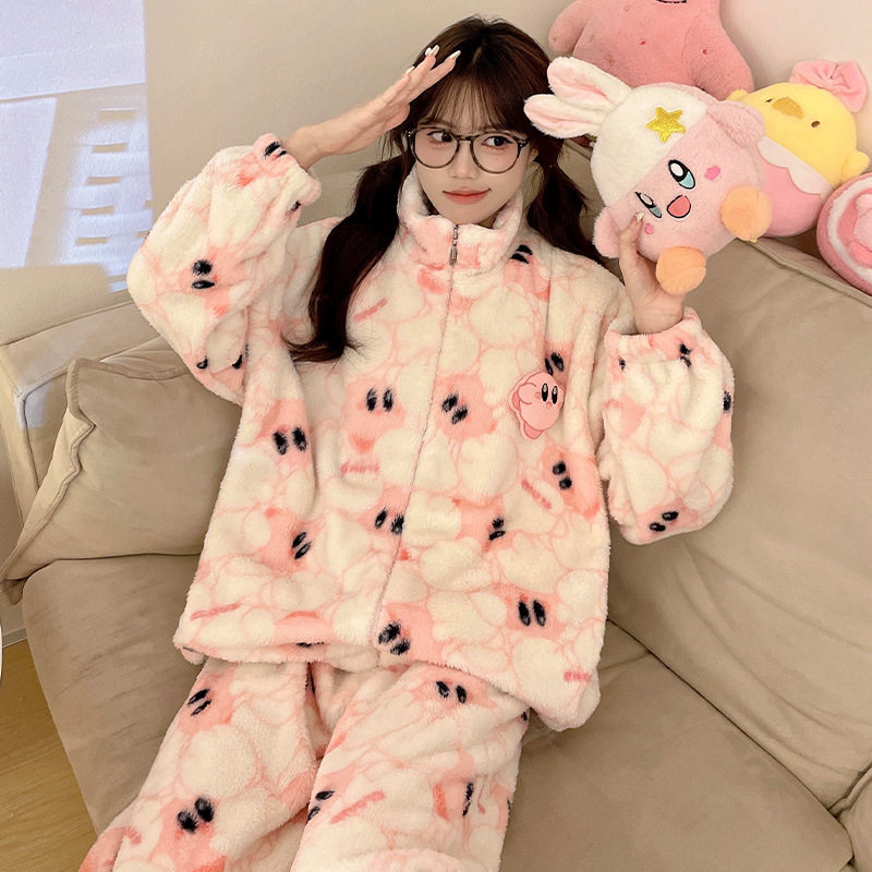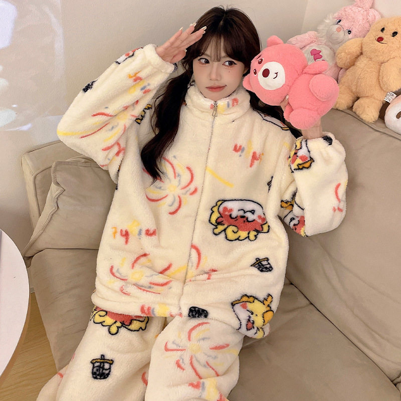 时尚洋气家居服女可外穿冬季加厚加绒大学生宿舍可爱超萌睡衣套装