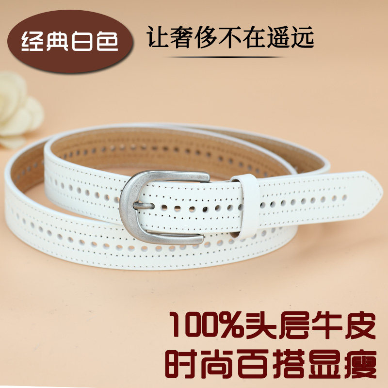 皮带女真皮头层纯牛皮白色潮流时尚百搭装饰配裙子牛仔裤腰带夏季