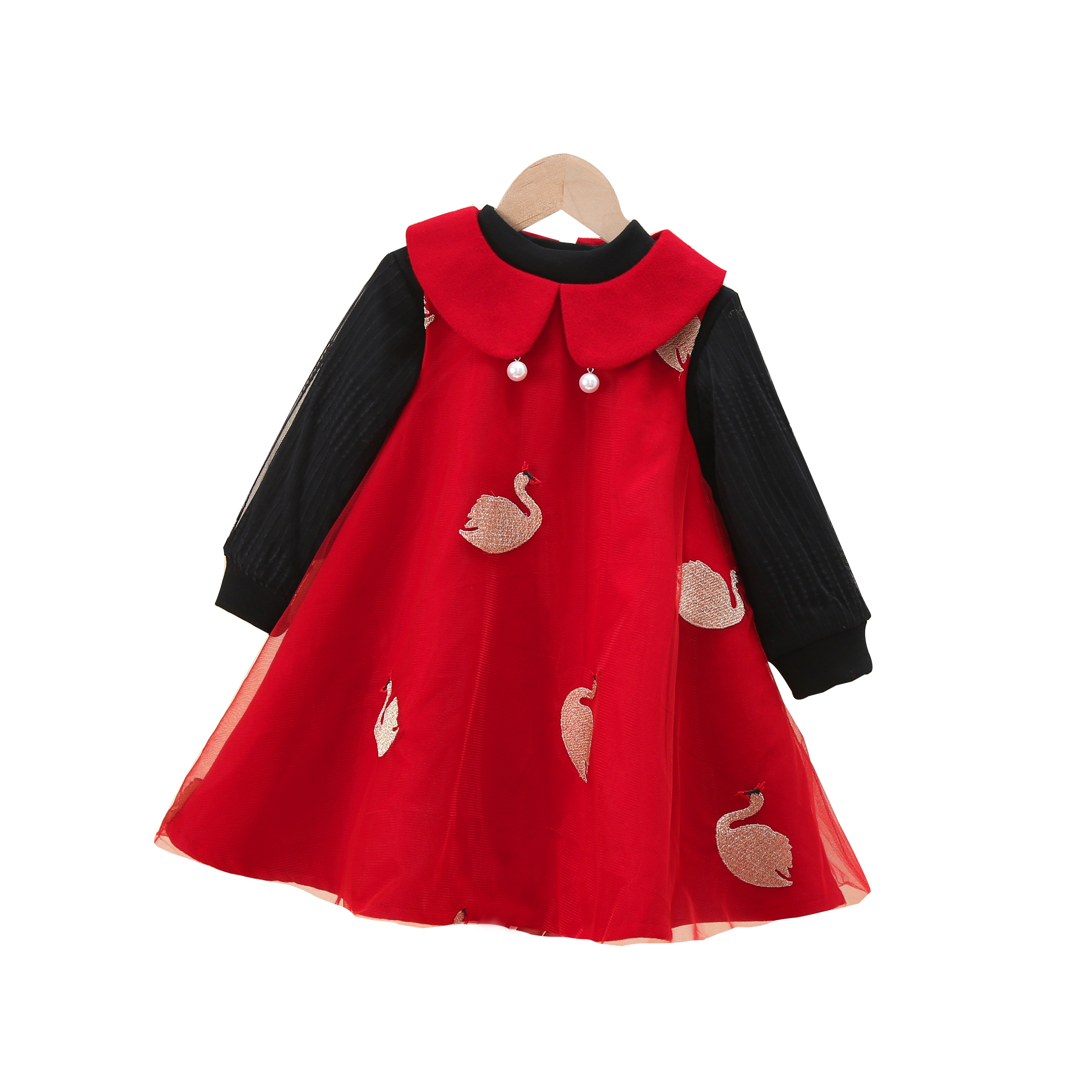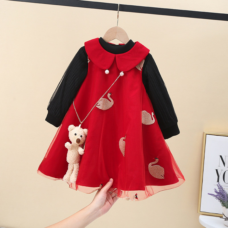 女童毛呢背心裙秋冬季儿童洋气公主女孩加绒红色呢子娃娃领连衣裙