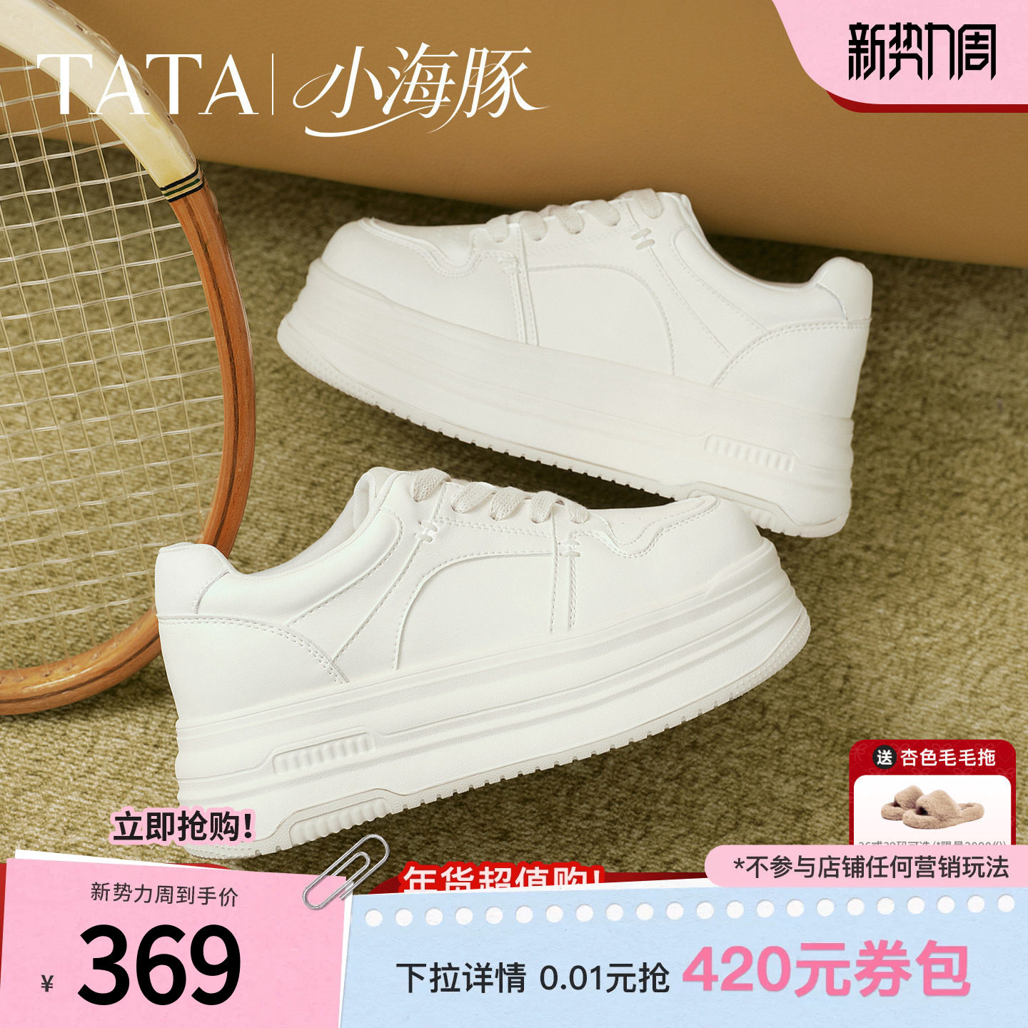 TATA他她小海豚板鞋女鞋春季款增高小白鞋厚底百搭学生鞋CLR01AM6