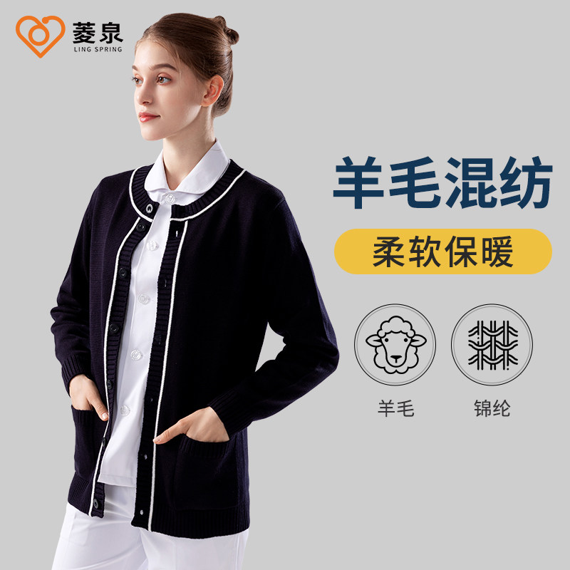 菱泉羊毛护士毛衣外套开衫医护秋冬款女针织加厚加绒不起球护士服