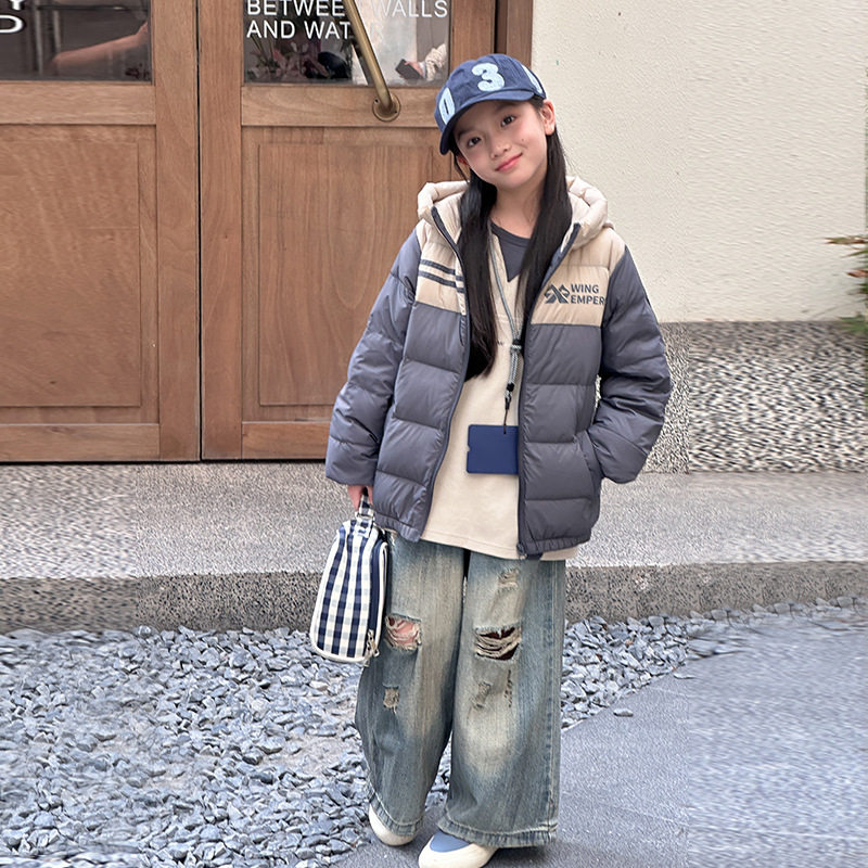 儿童轻薄羽绒服男女童装秋冬新款韩版拼色撞色户外中大童保暖