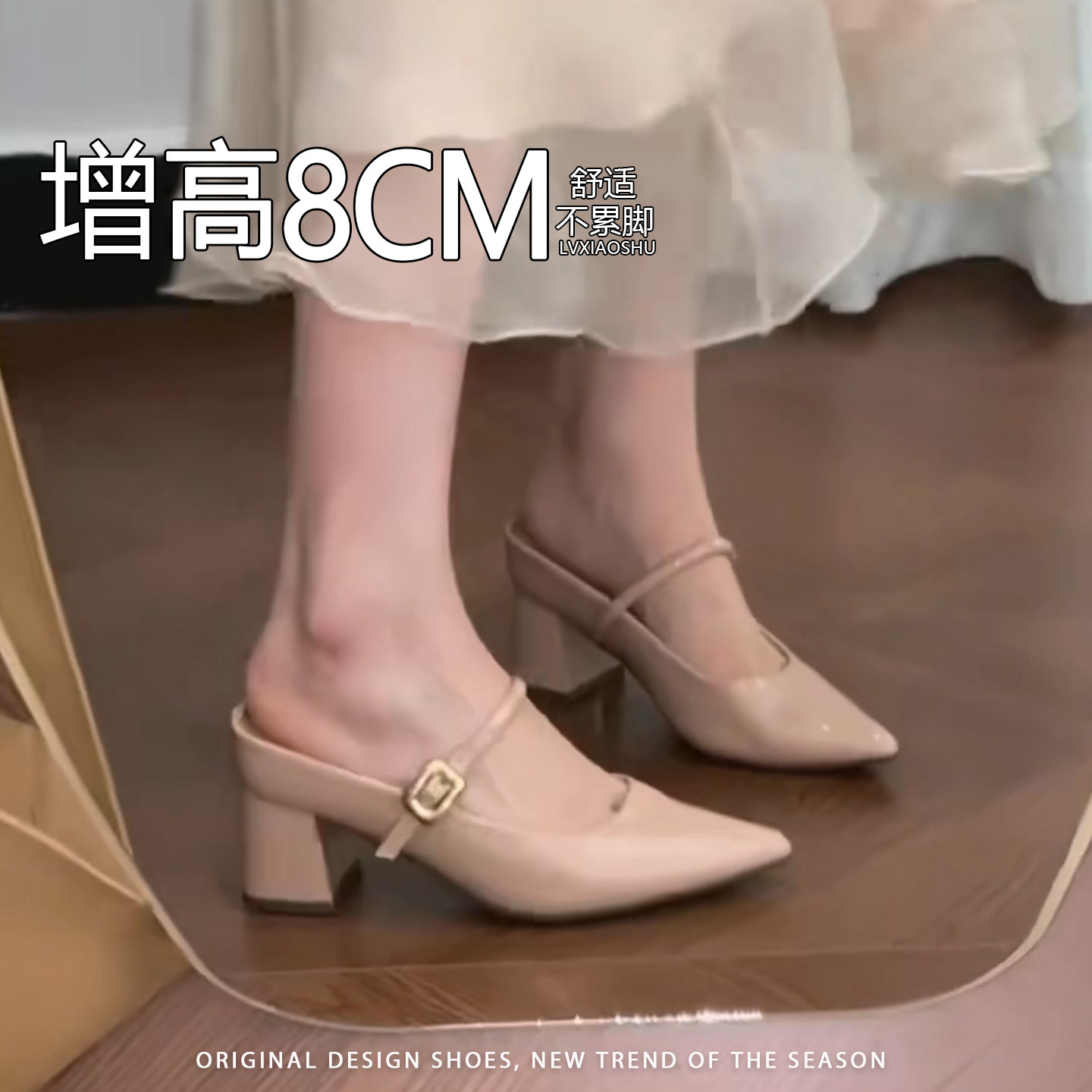 法式内增高尖头玛丽珍鞋女2026新款一字带气质优雅防滑通勤半拖鞋