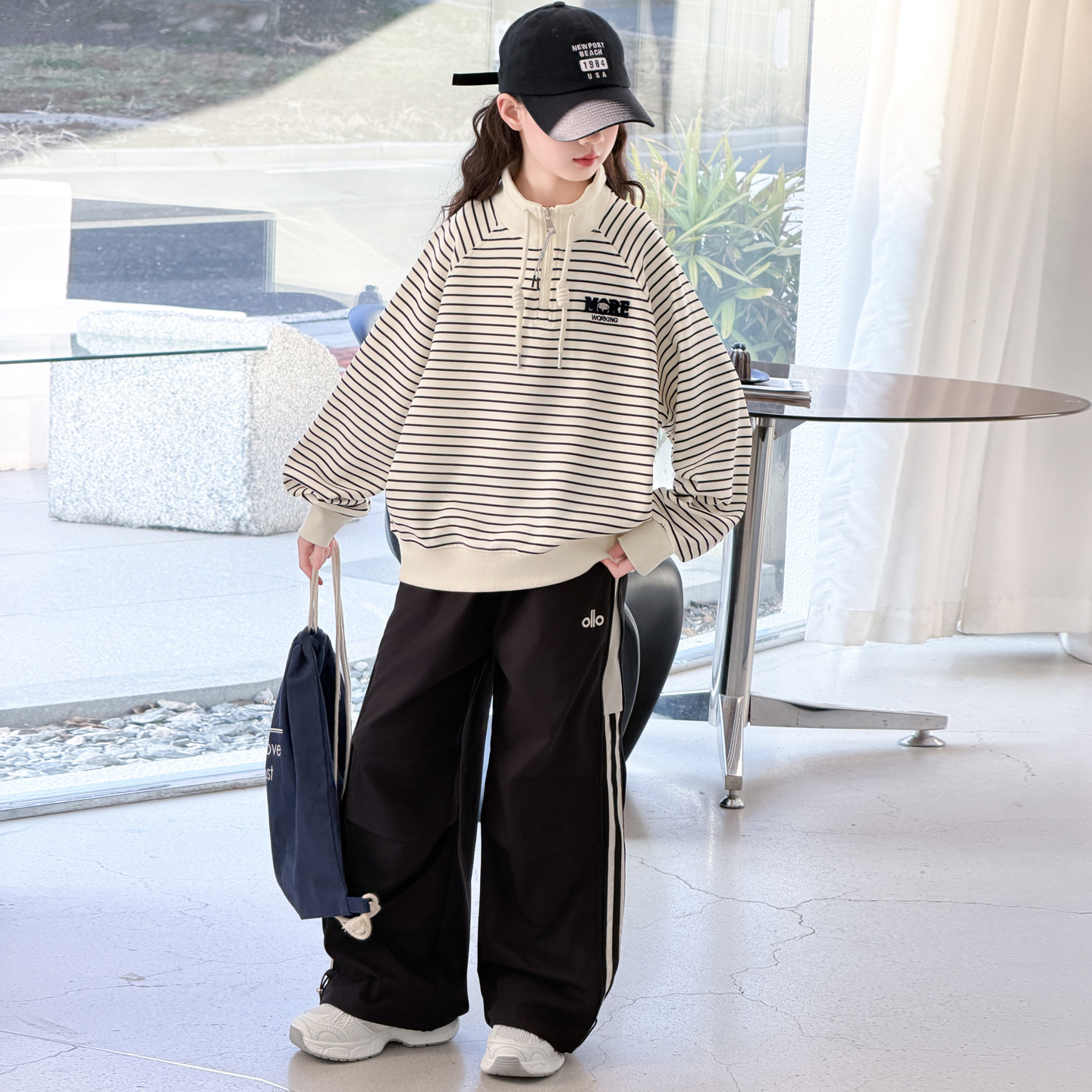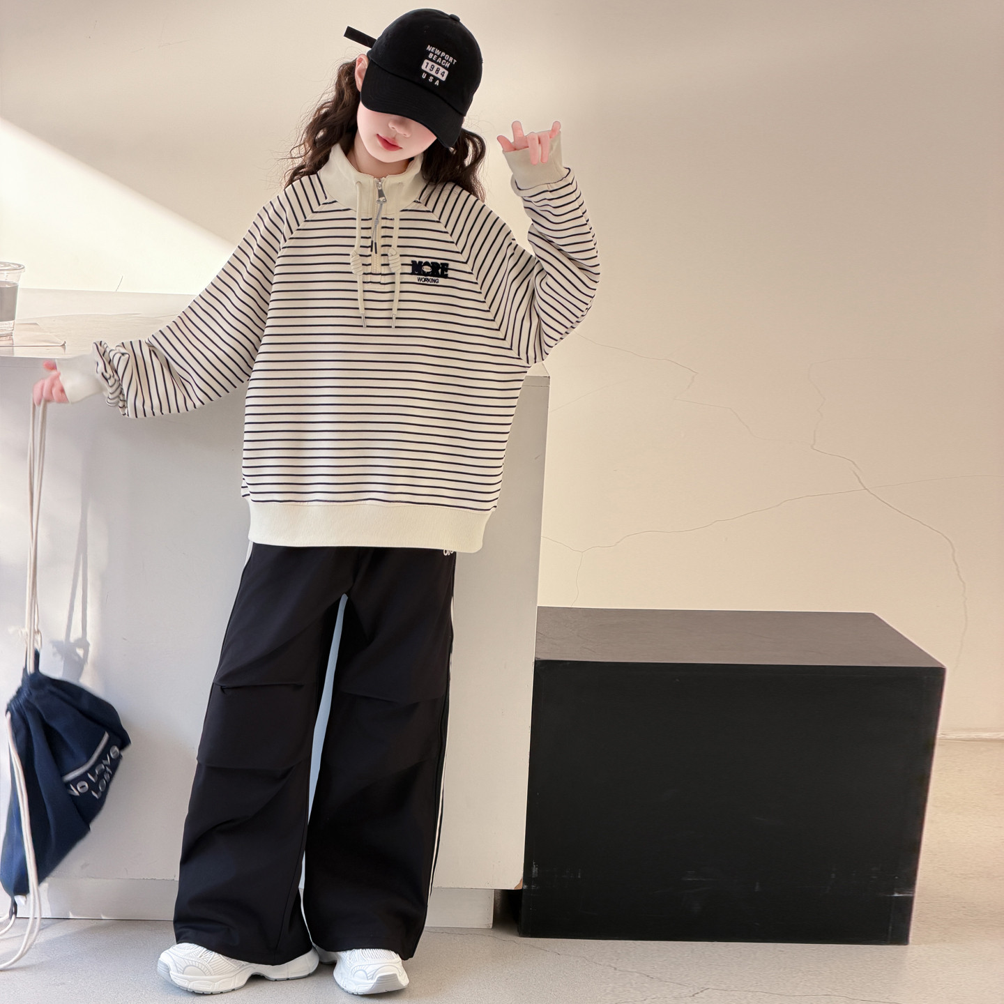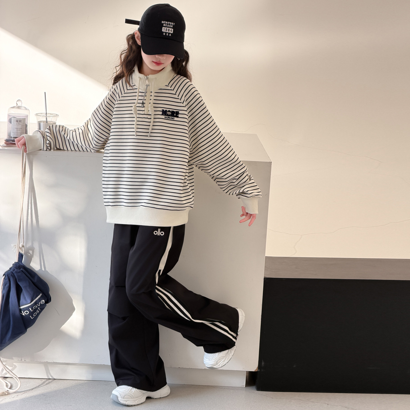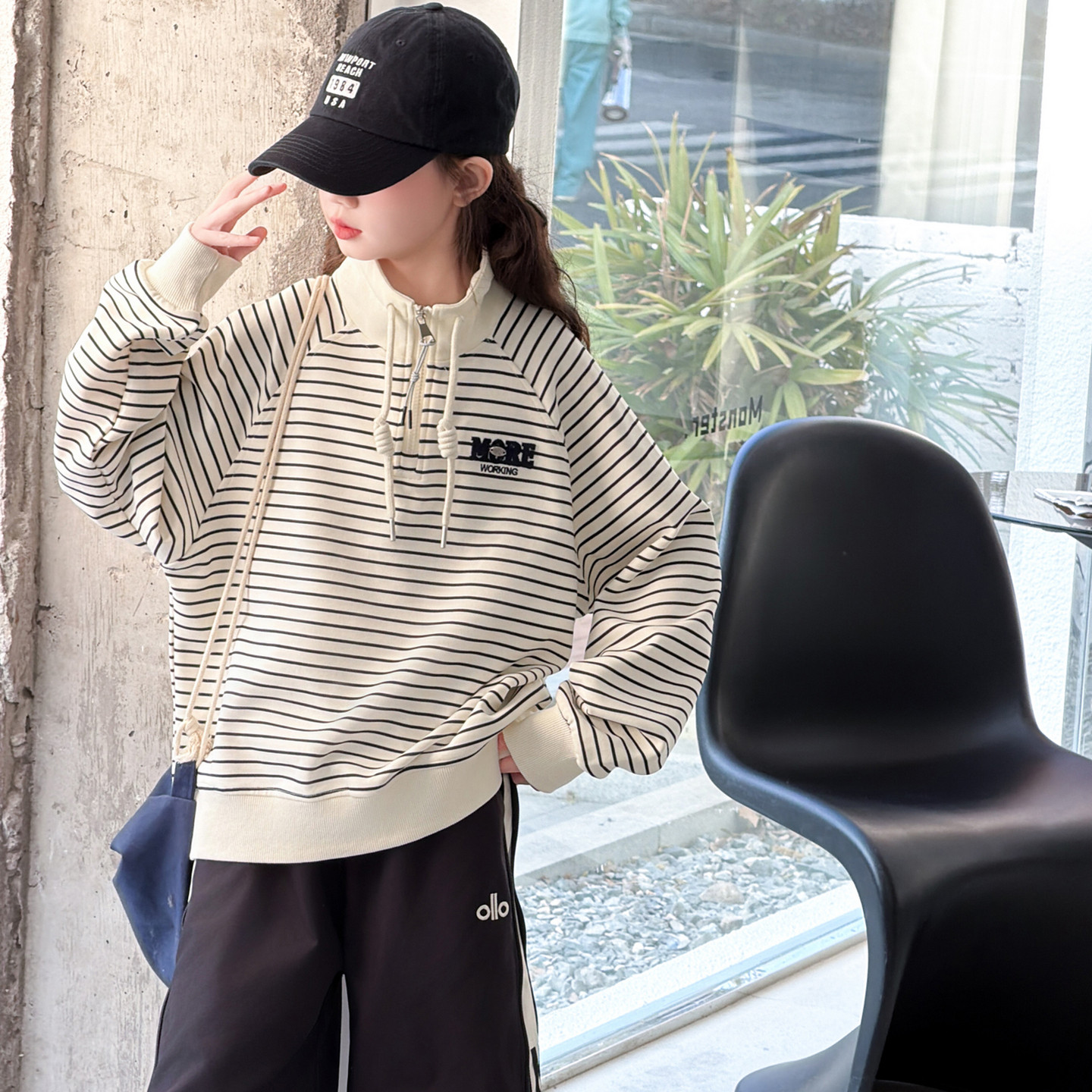 女童卫衣2026新款春装女大童洋气韩系百搭条纹上衣儿童超好看衣服