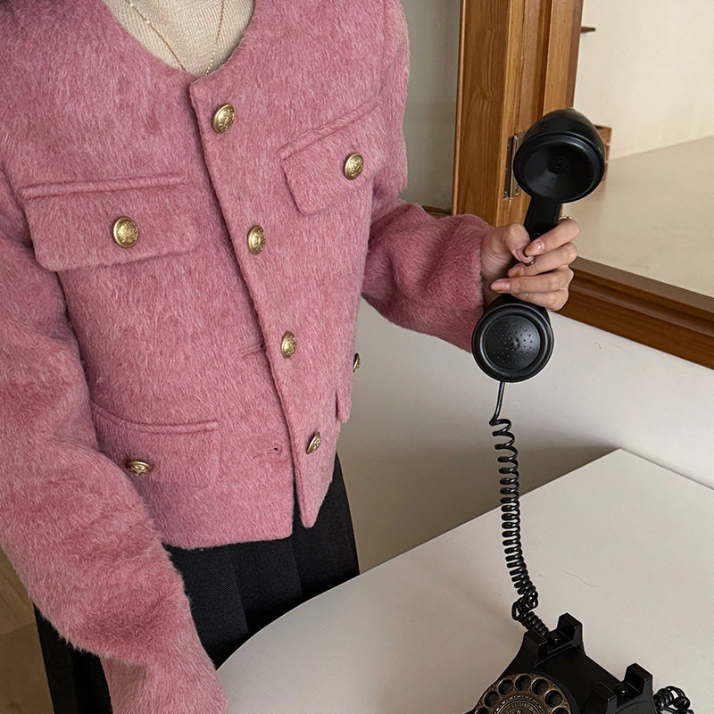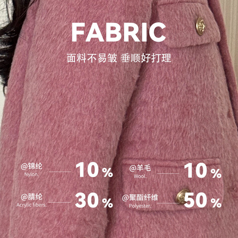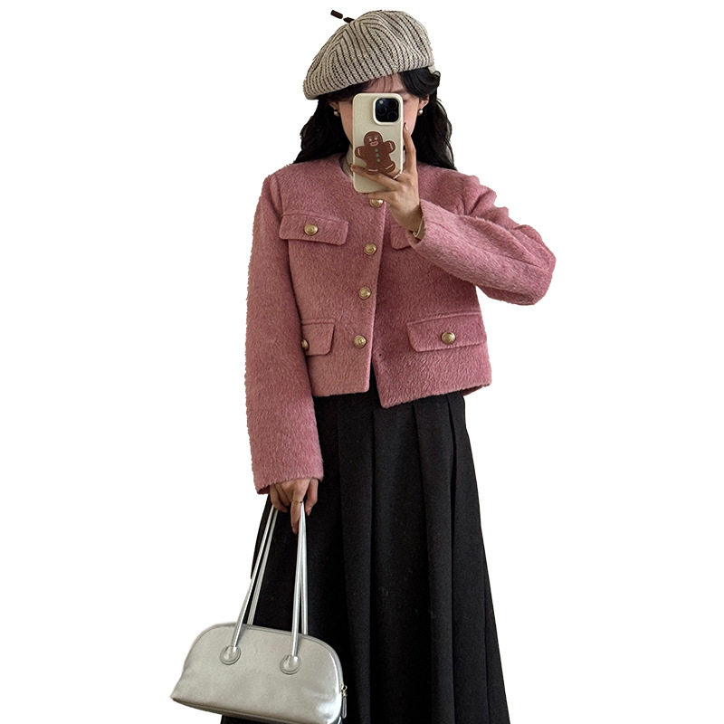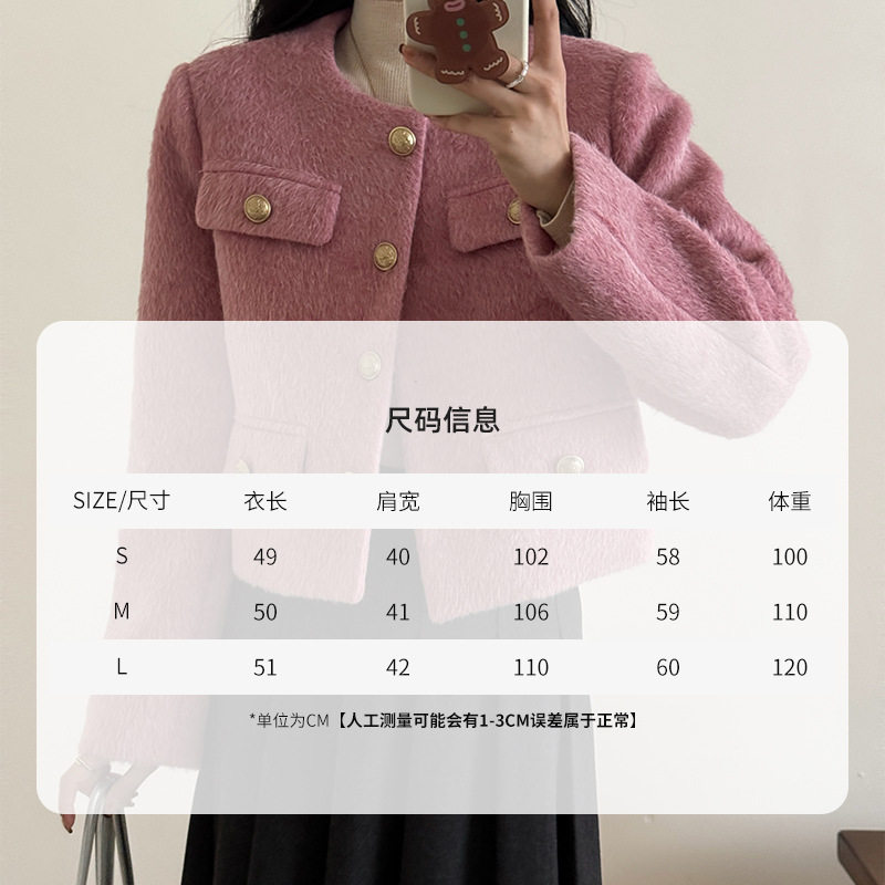 法式气质粉色小香风毛呢外套女秋冬高级感夹棉加厚小个子短款夹克