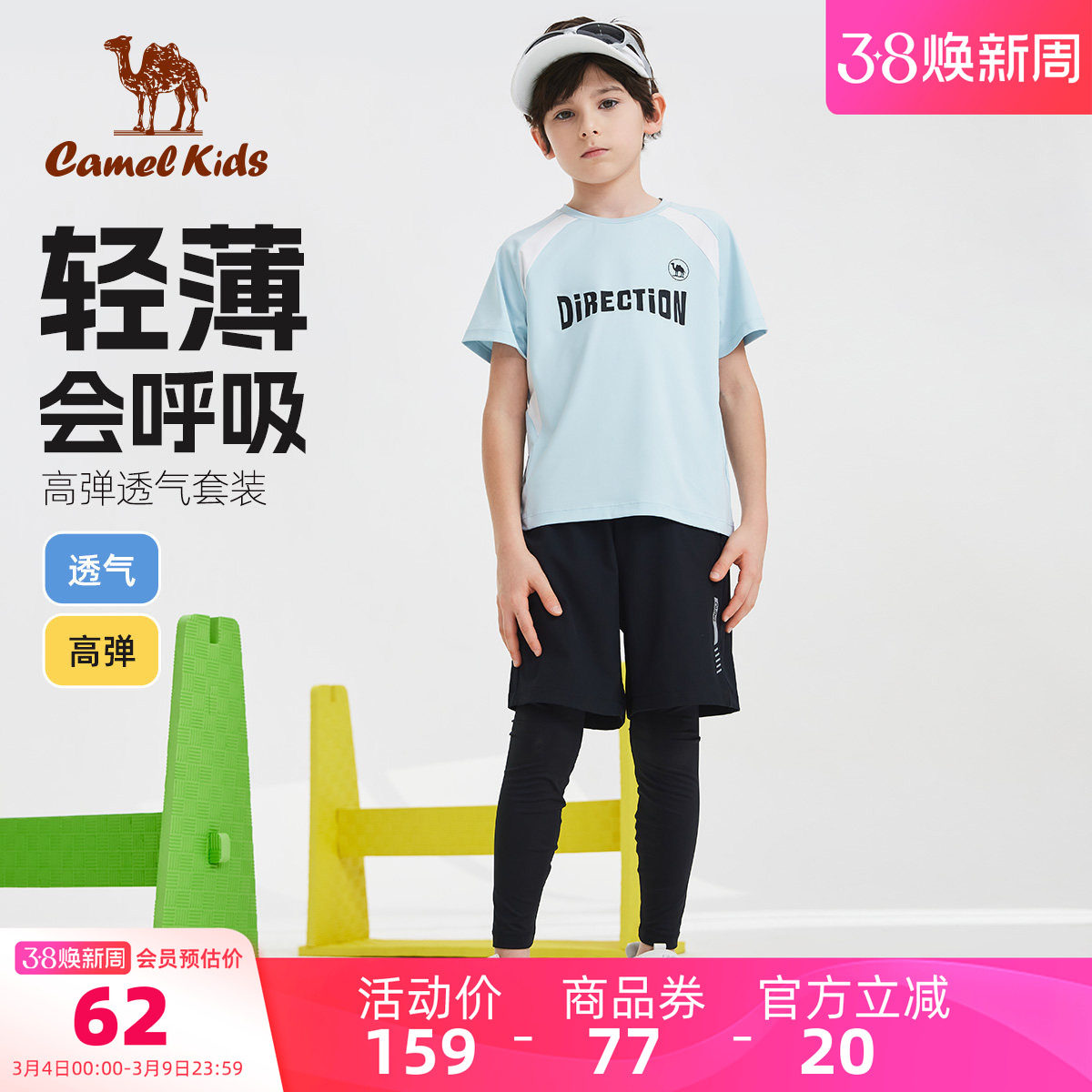 【清仓】骆驼男童短袖两件套夏季休闲中大童套装薄款儿童运动T恤
