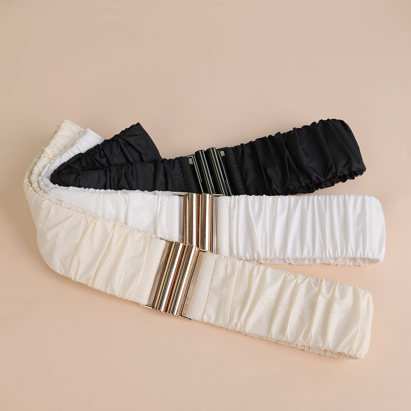 白色羽绒服腰带女款松紧弹力收腰米白装饰配棉服收腰专用配件金扣