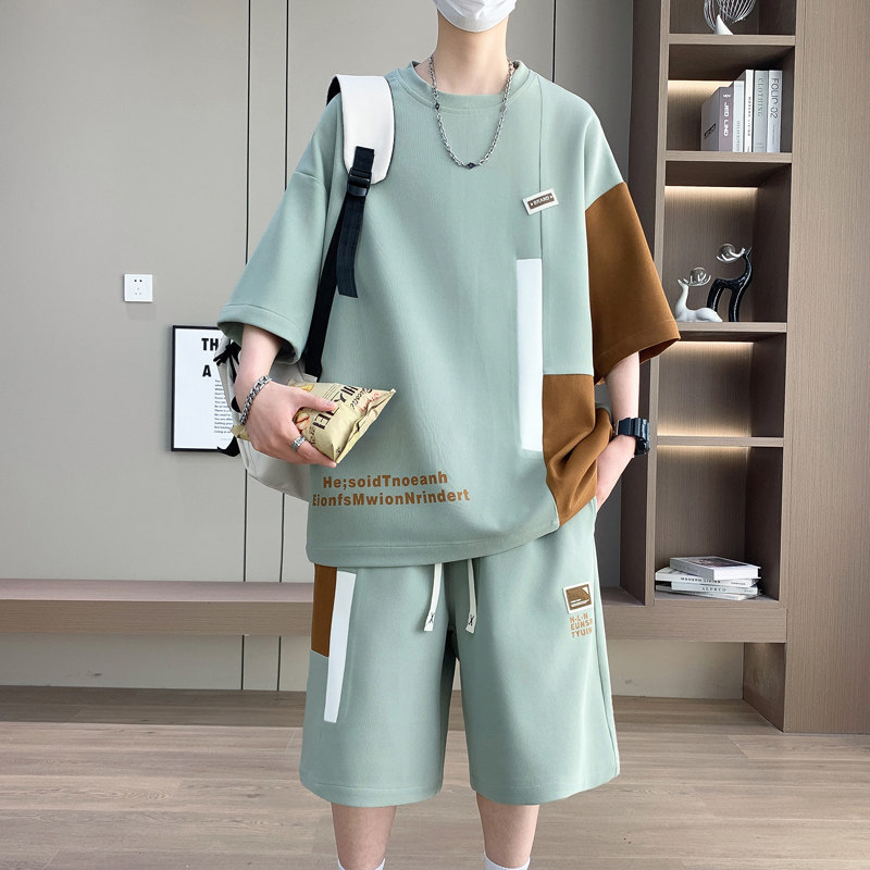 短袖t恤男孩12-15岁夏季新款初中学生帅气运动套装青少年大童男装