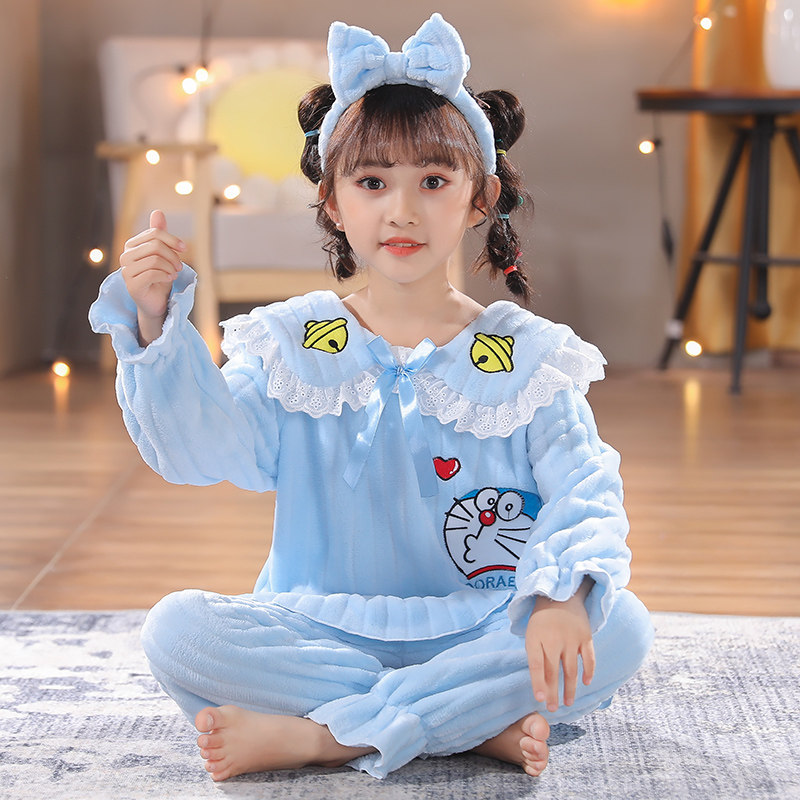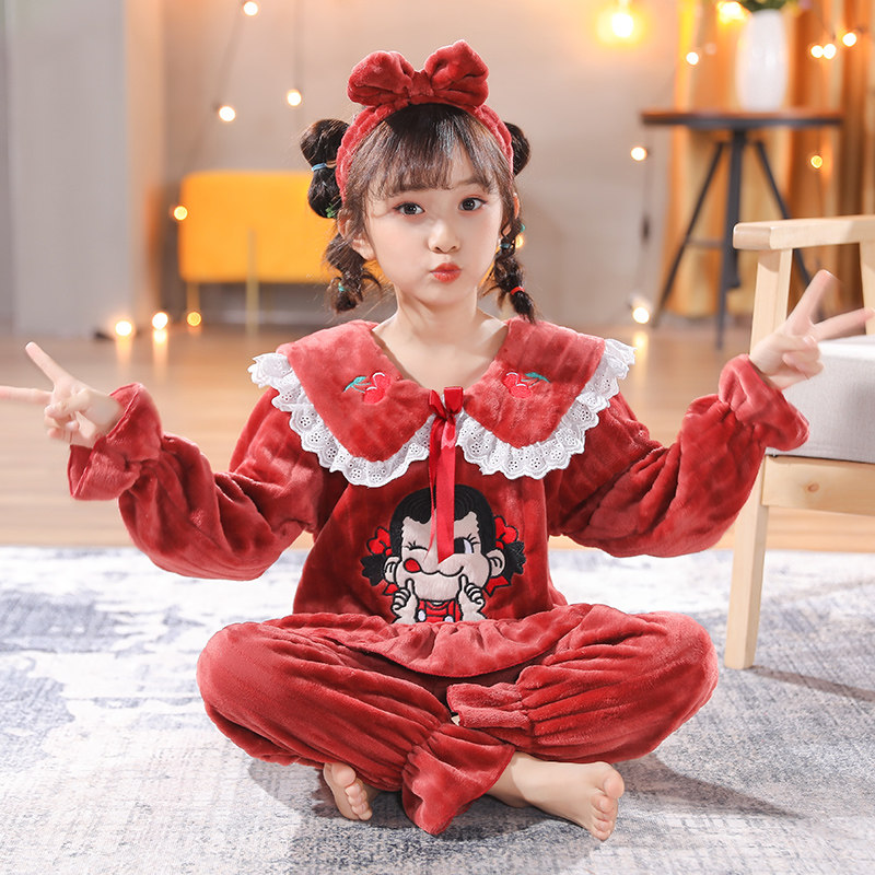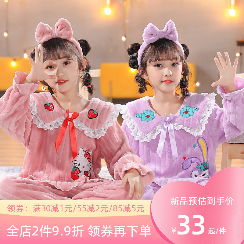 女童法兰绒睡衣加绒加厚女孩珊瑚绒公主家居服儿童中大童秋冬套装