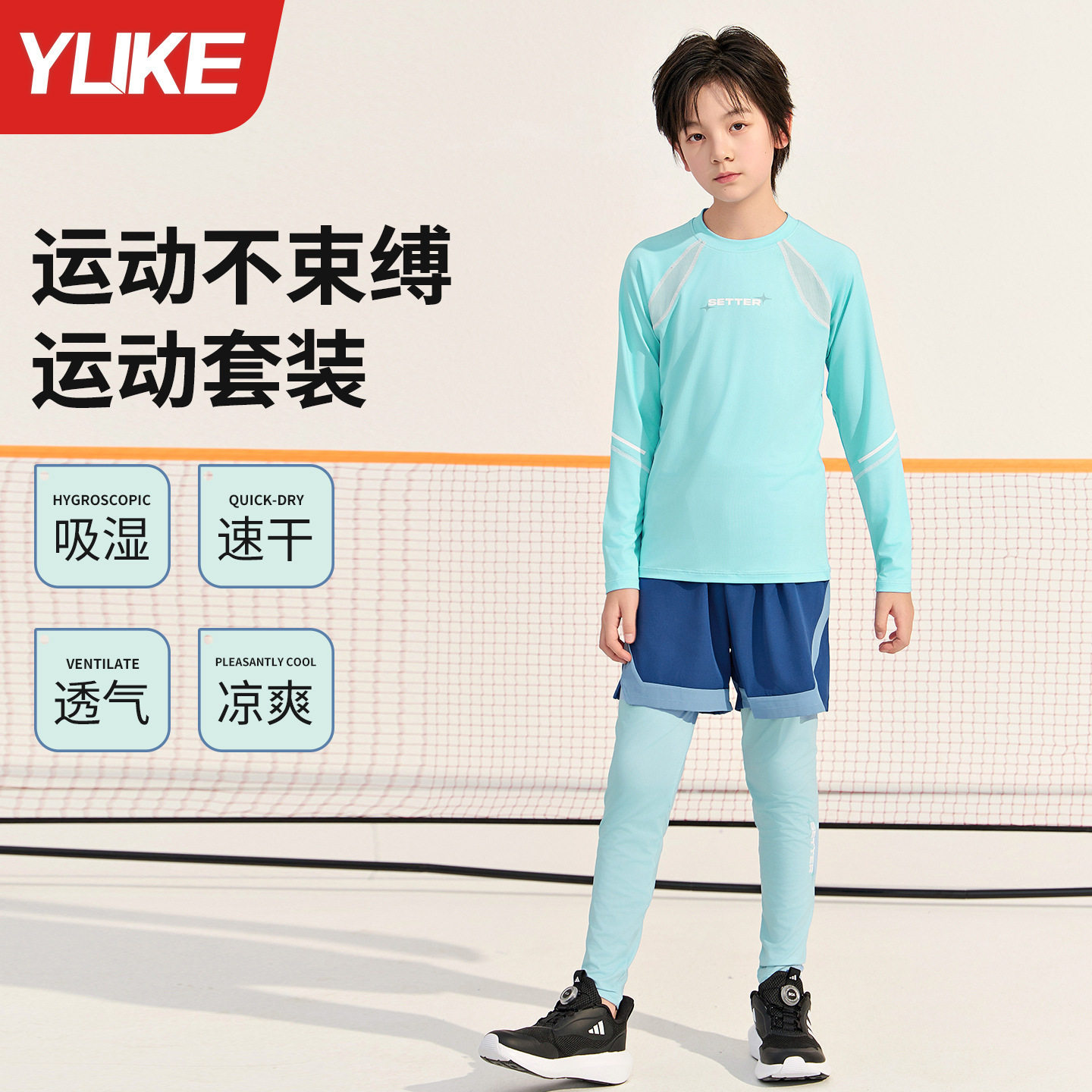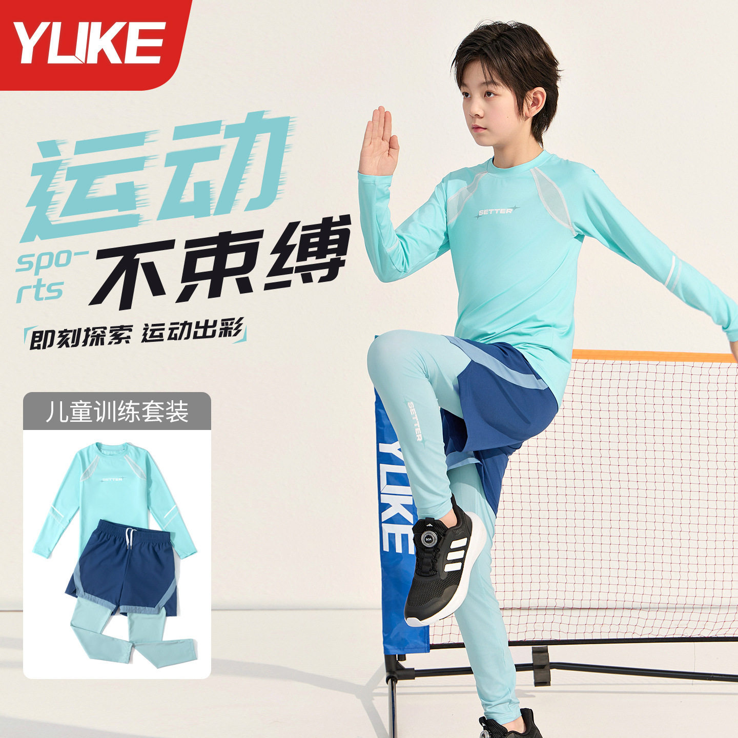 儿童紧身衣套装足球服长袖训练服男童女打底速干篮球运动套装