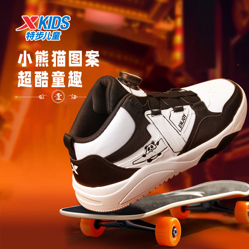 特步童鞋2026年春季款熊猫鞋儿童运动鞋旋转扣板鞋男童黑白休闲鞋