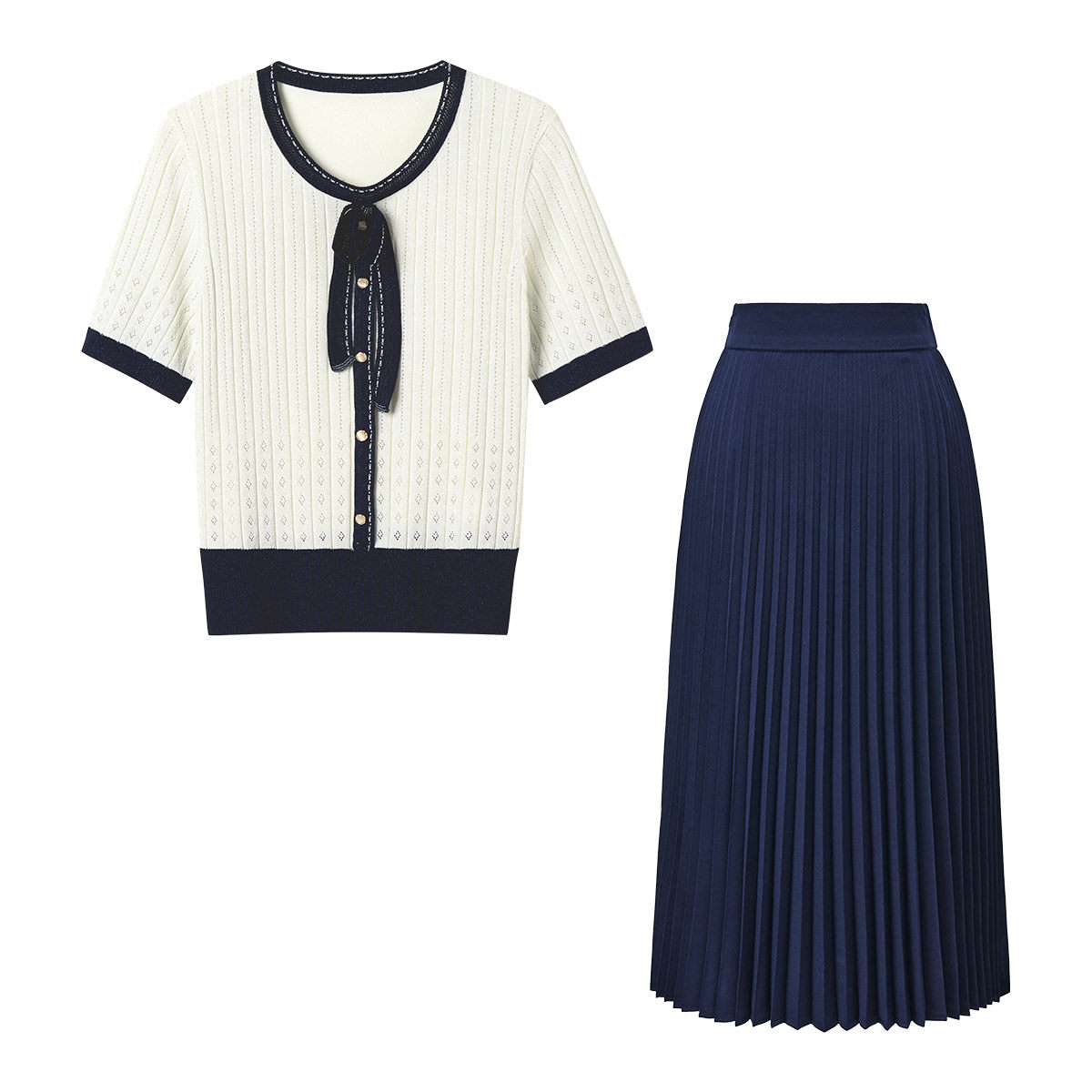 颜域针织衫半身裙套装2026夏季新款简约长袖上衣复古裙子两件套女