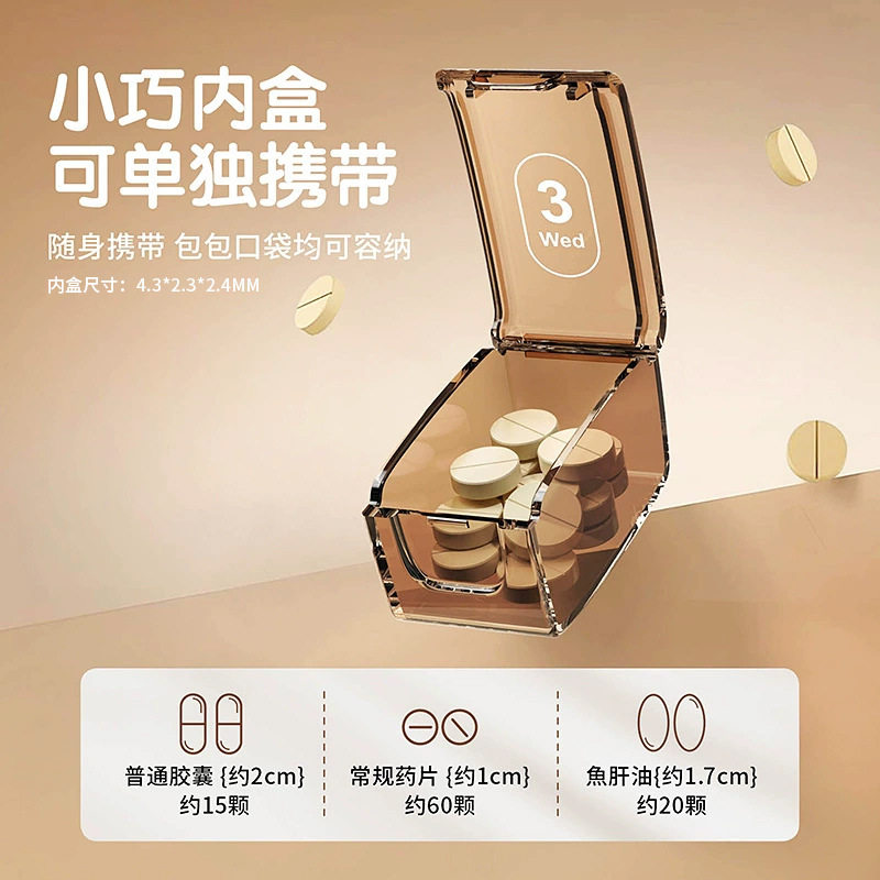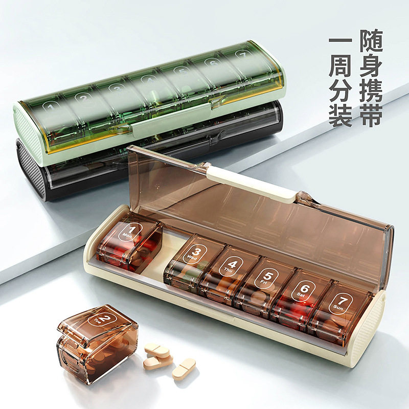 一周七天便携式密封防潮避光大容量分装7格药盒随身药品收纳盒