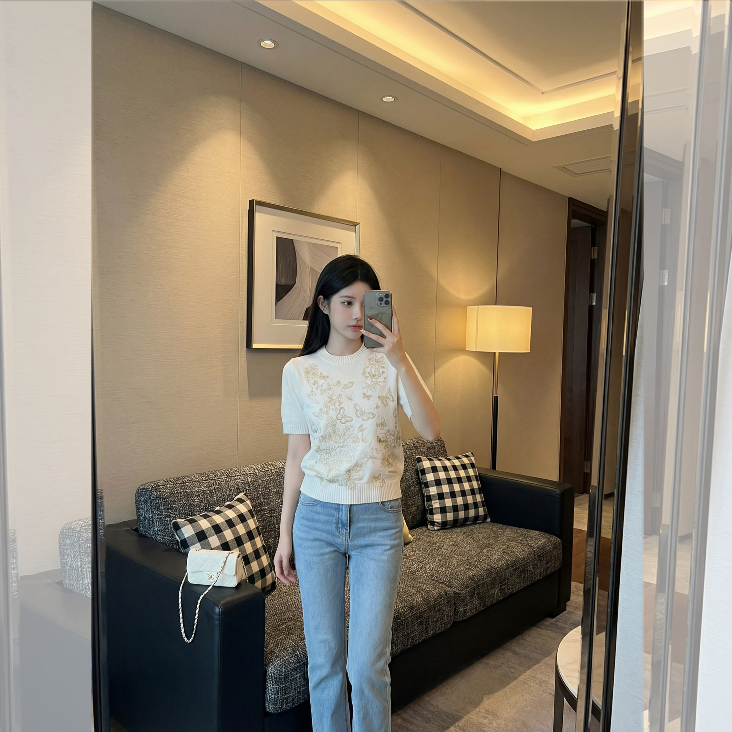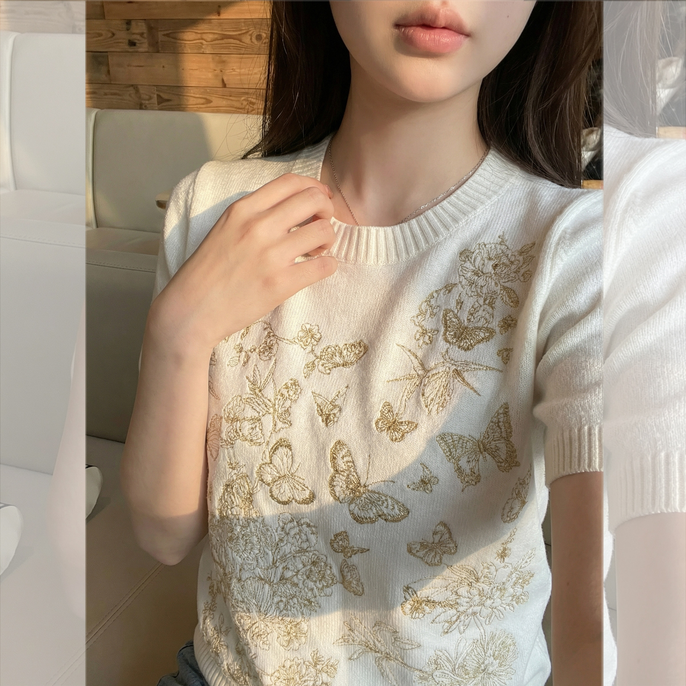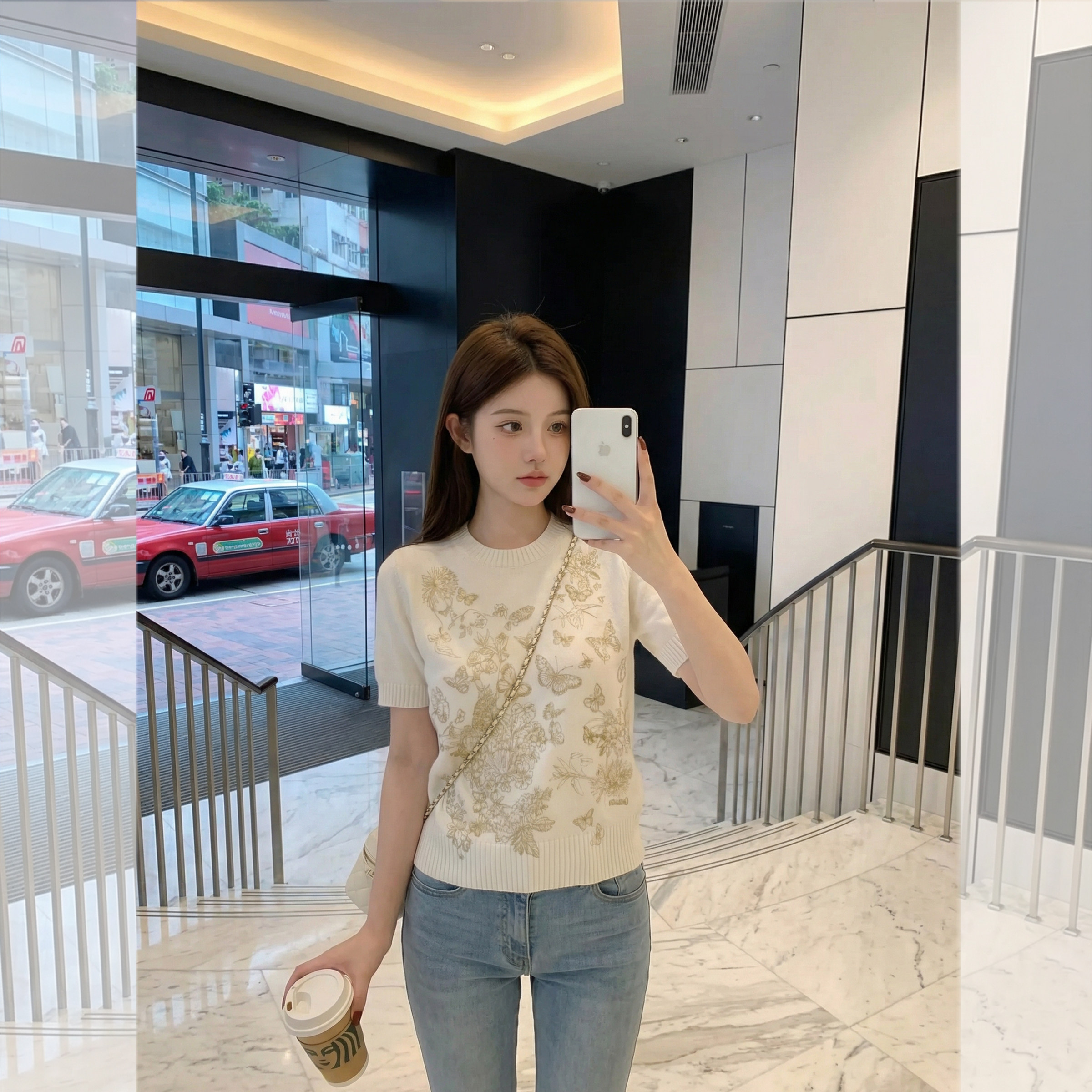 钟菲菲春款2026新款女装针织chic气质上衣短袖高端小资独特漂亮