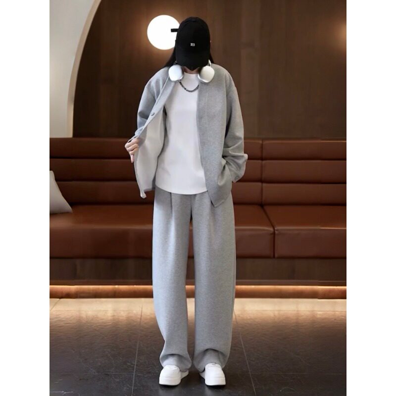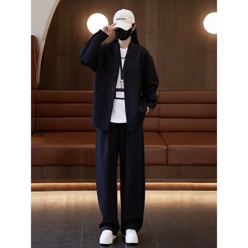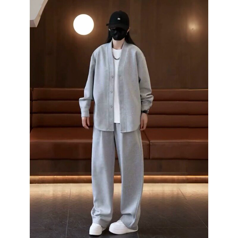 2026春季新款极简风休闲运动套装男士纯色V领开衫外套两件套男款