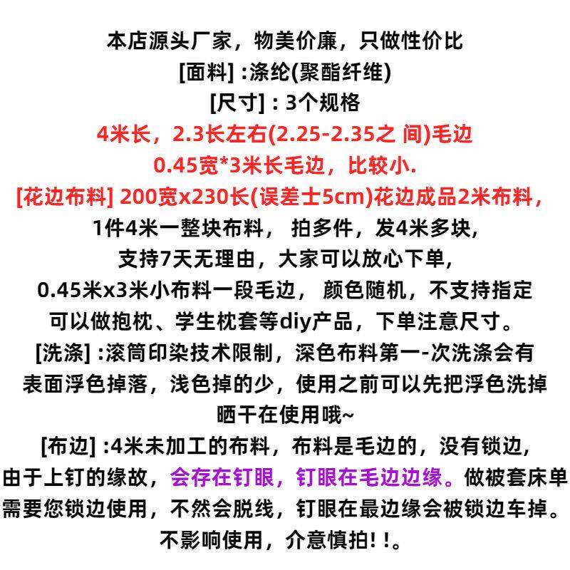 清仓特价处理4米大块布料可DIY床单被套隔断布防尘布沙发罩小布料