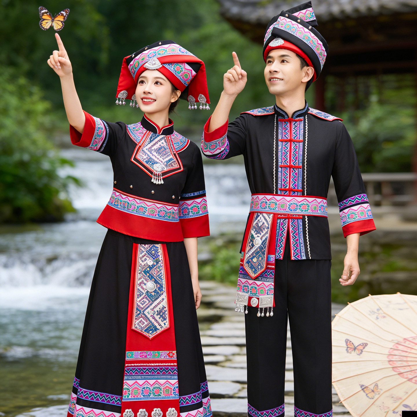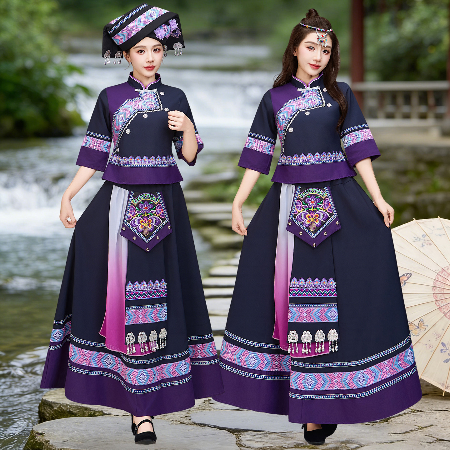 少数民族三月三服装女成人广西壮族服饰苗族演出服瑶族舞蹈表演服
