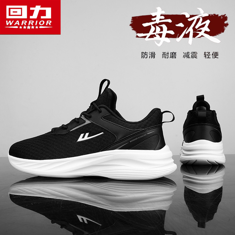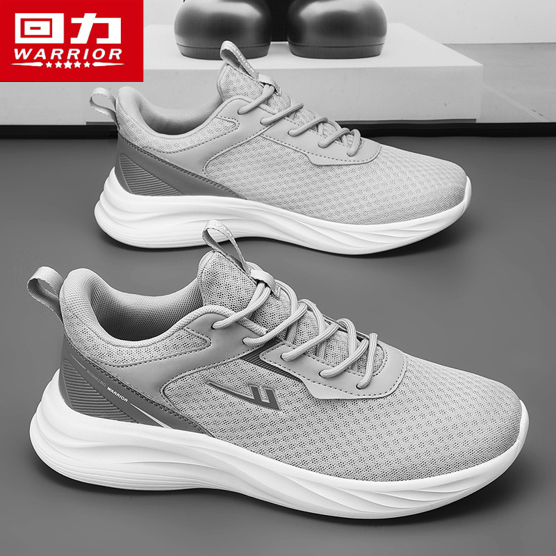 回力男鞋夏季透气网面休闲运动鞋男士轻便跑步软底增高黑色老爹鞋