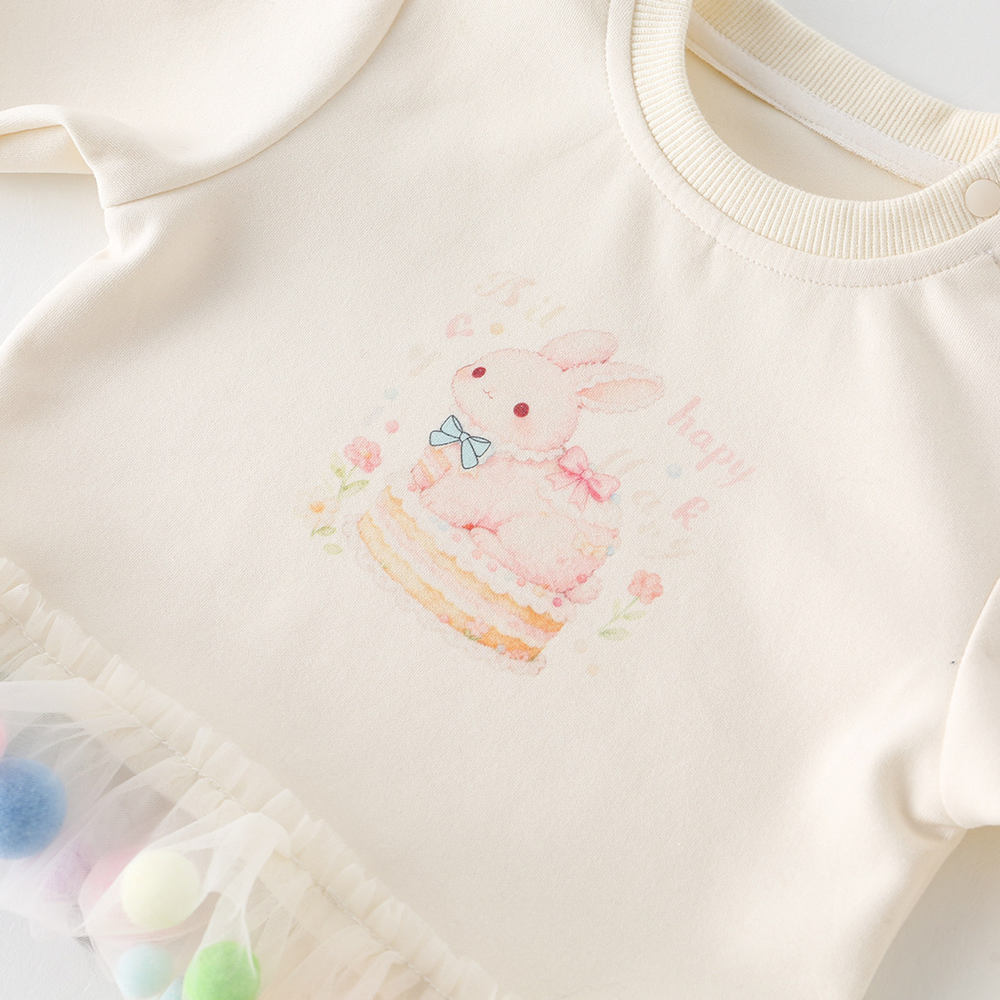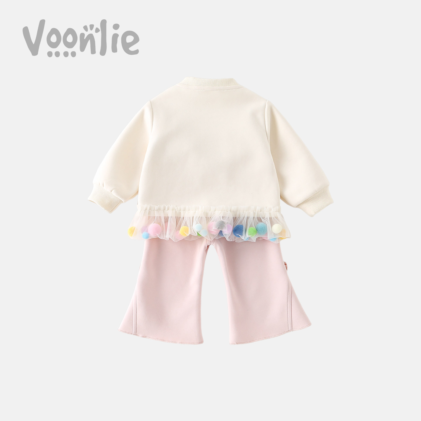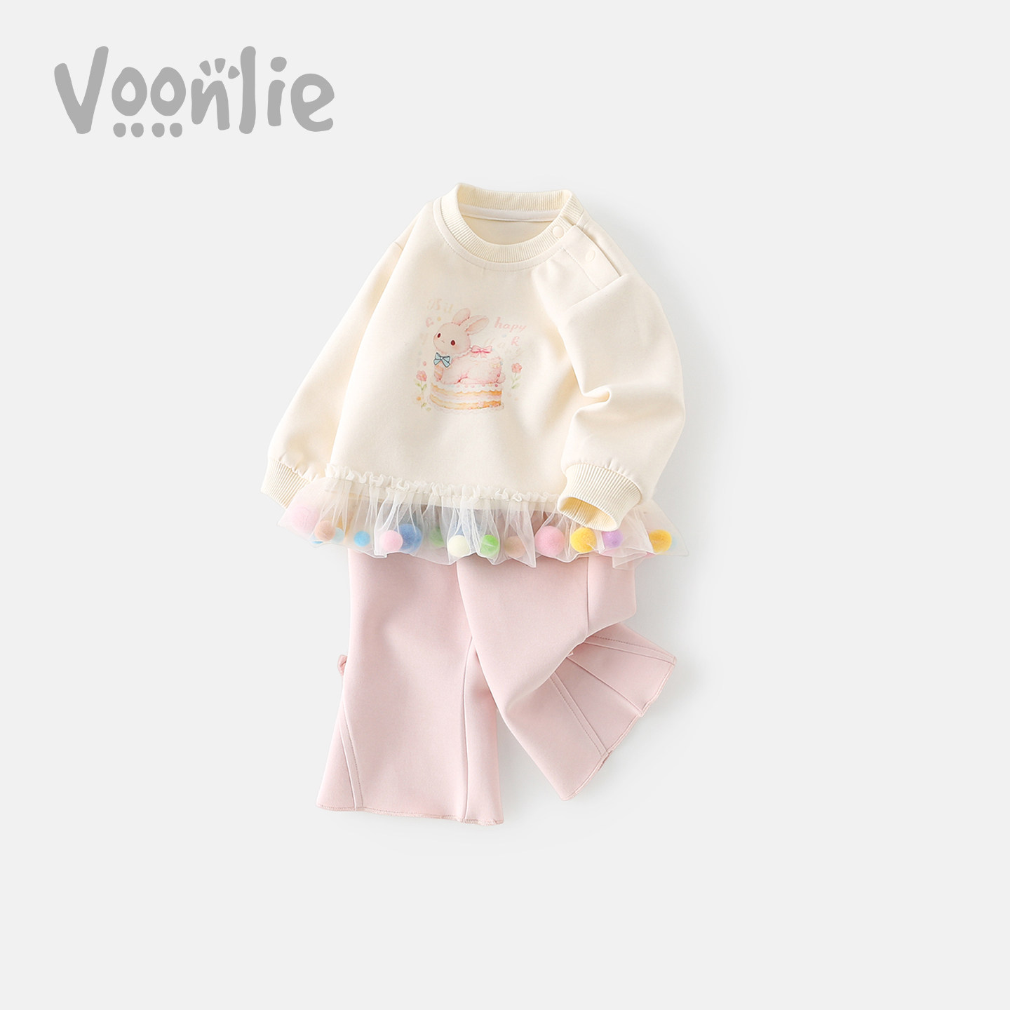 凡猎女童套装春装婴儿拼接网纱衣服宝宝粉色卫衣喇叭裤两件套春秋