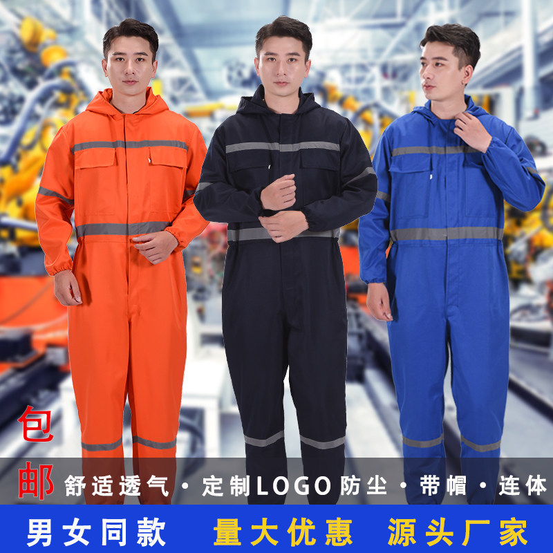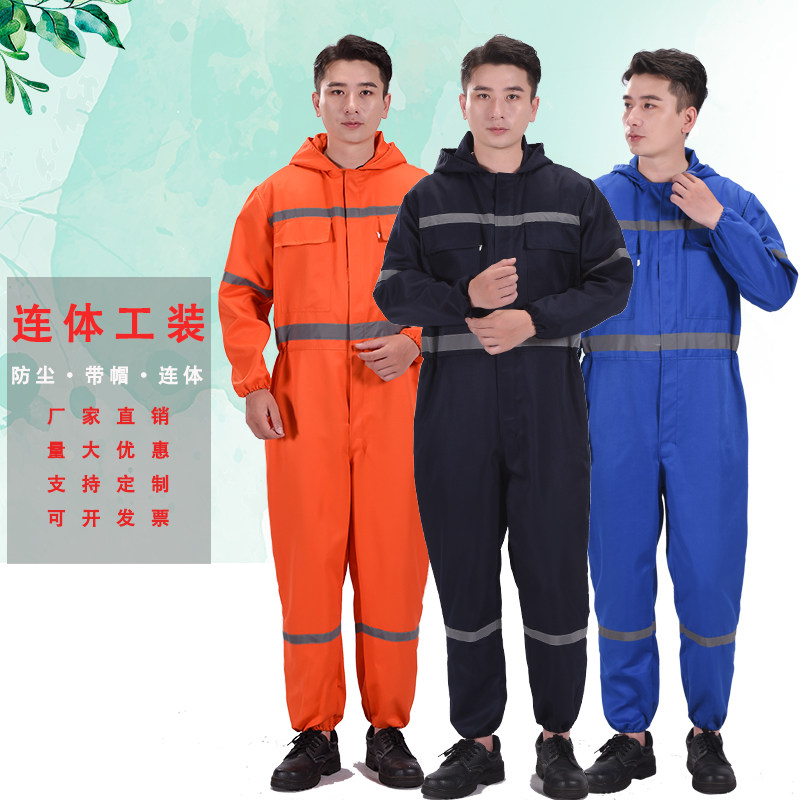 多反连体工作服男劳保服长款连帽工厂车间防尘耐磨防污一体喷漆服