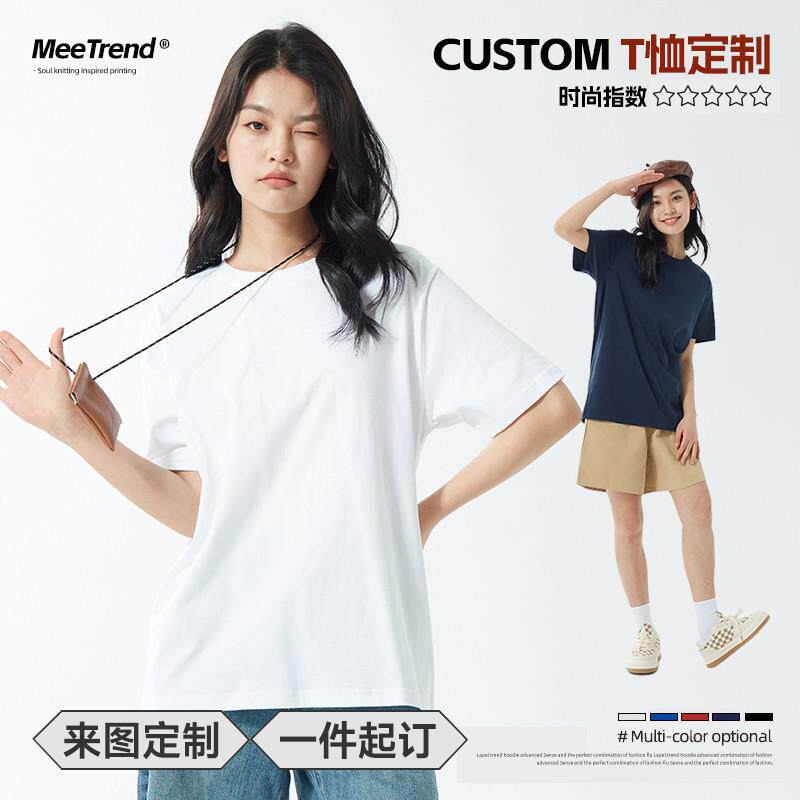 纯棉圆领短袖工作服T恤定制印logo图刺绣定做广告文化衫团建服装