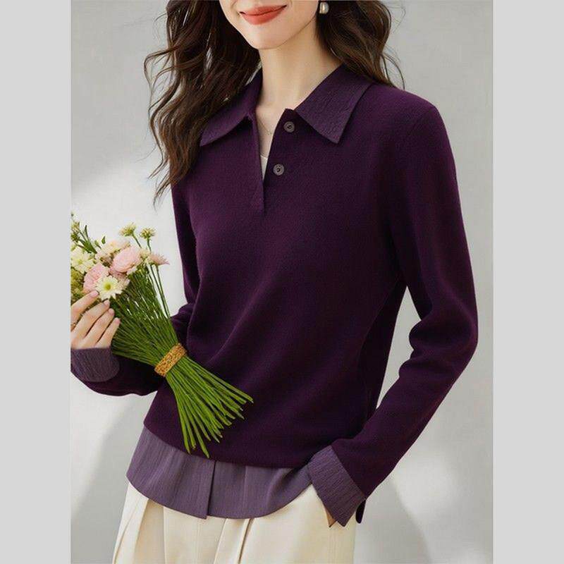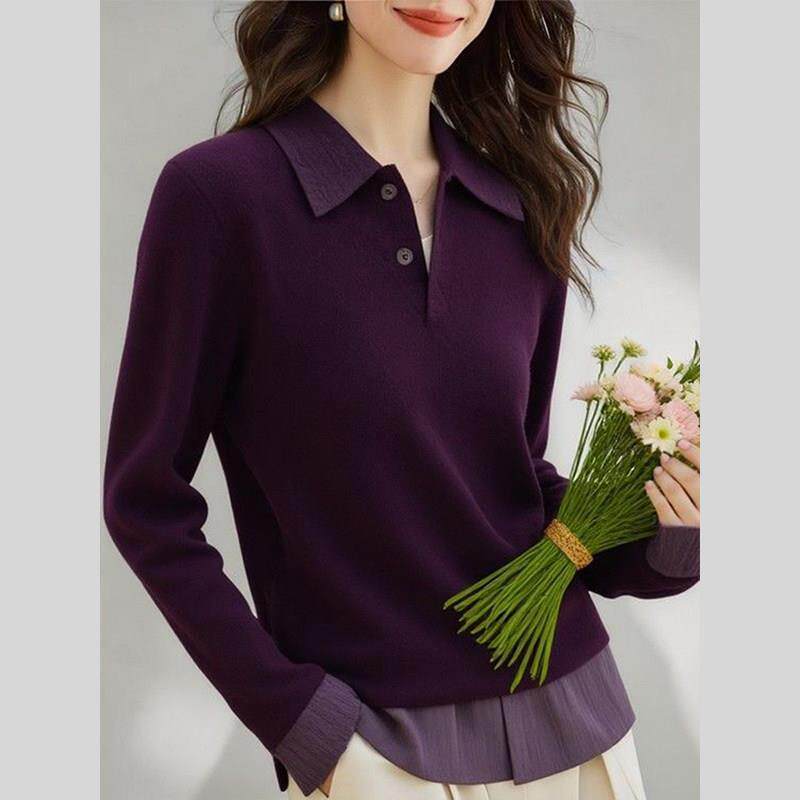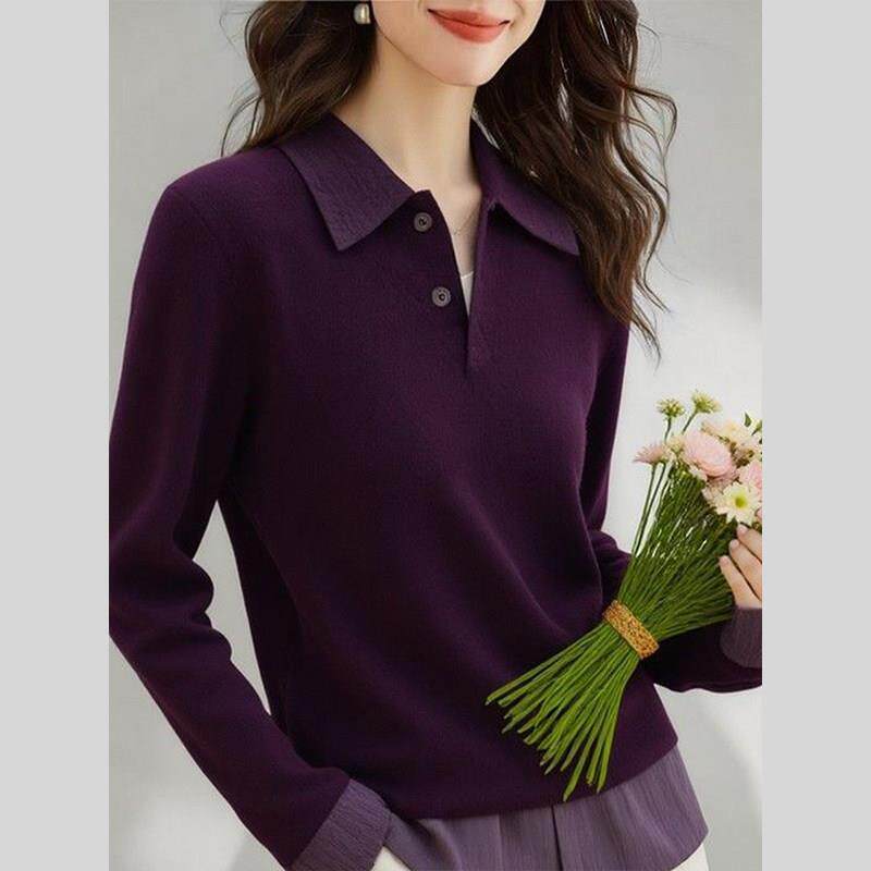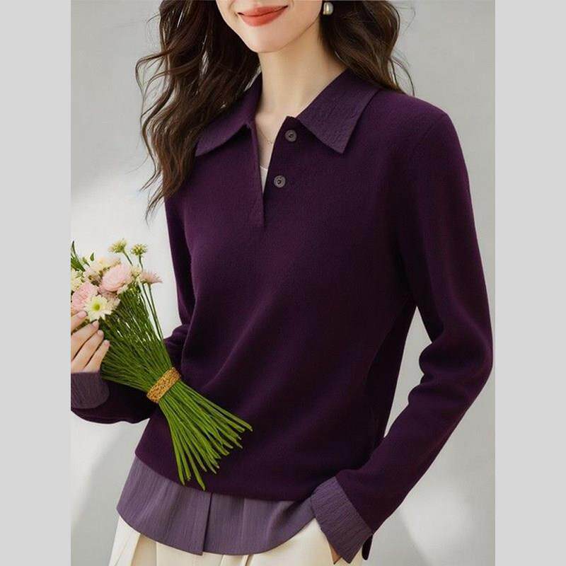 紫色polo领打底针织衫女装2026年早春新款独特别致内搭可外穿上衣