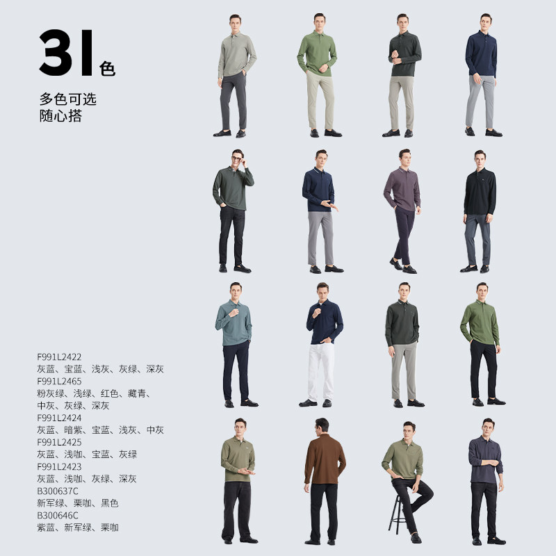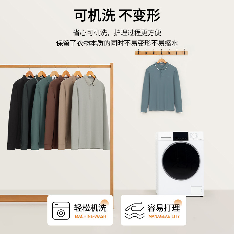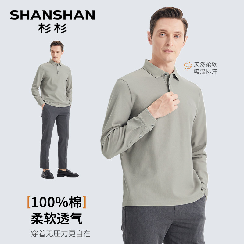 SHANSHAN杉杉官方纯棉长袖T恤男款2025春季新款翻领商务POLO衫男