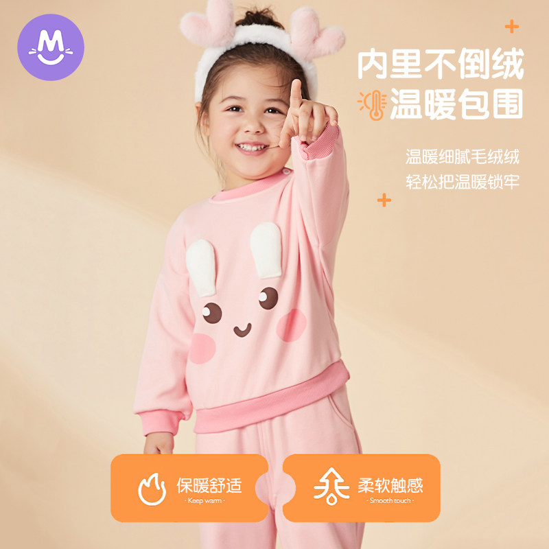 圆圆猫 2026春季新款儿童套装男女童加绒加厚宝宝卫衣洋气两件套