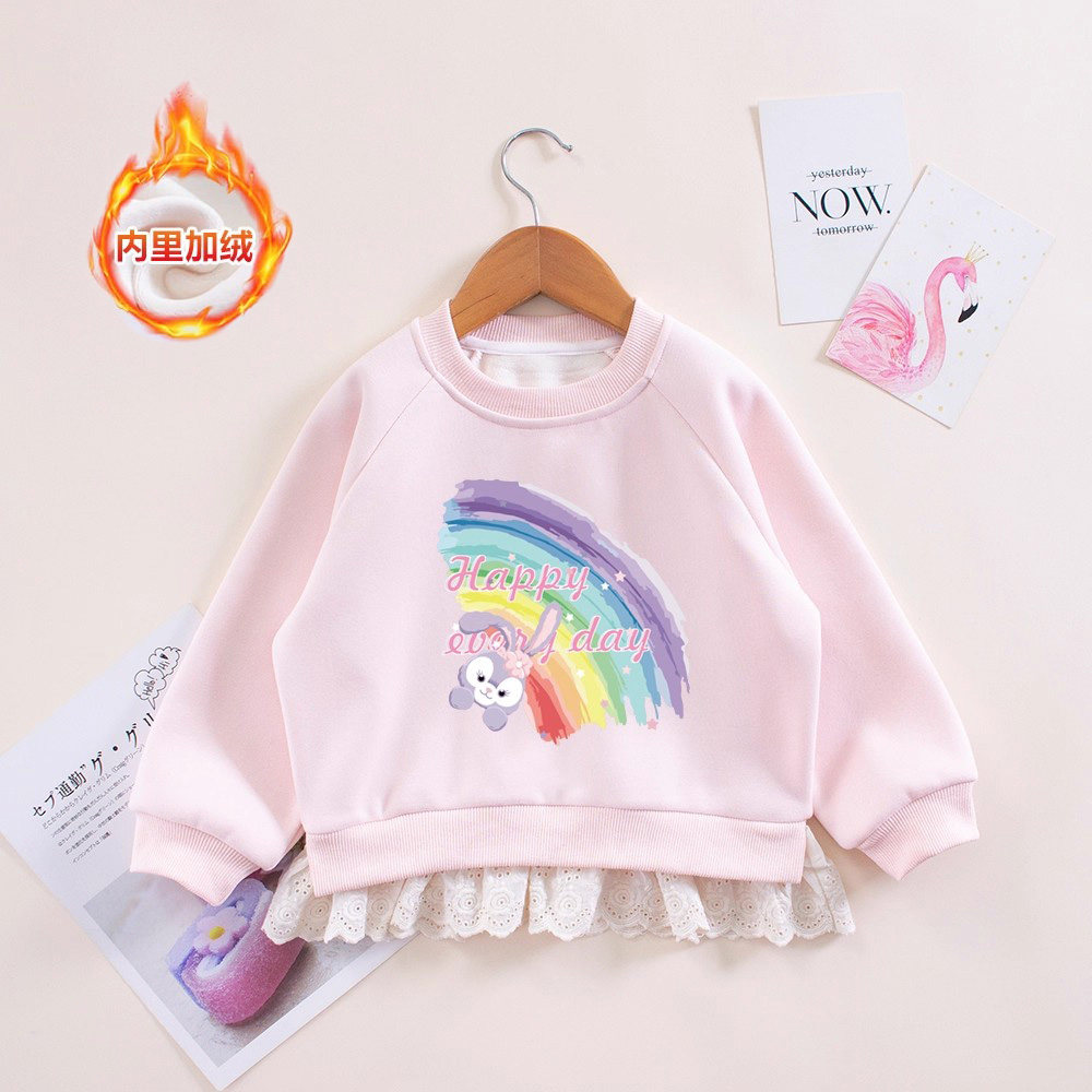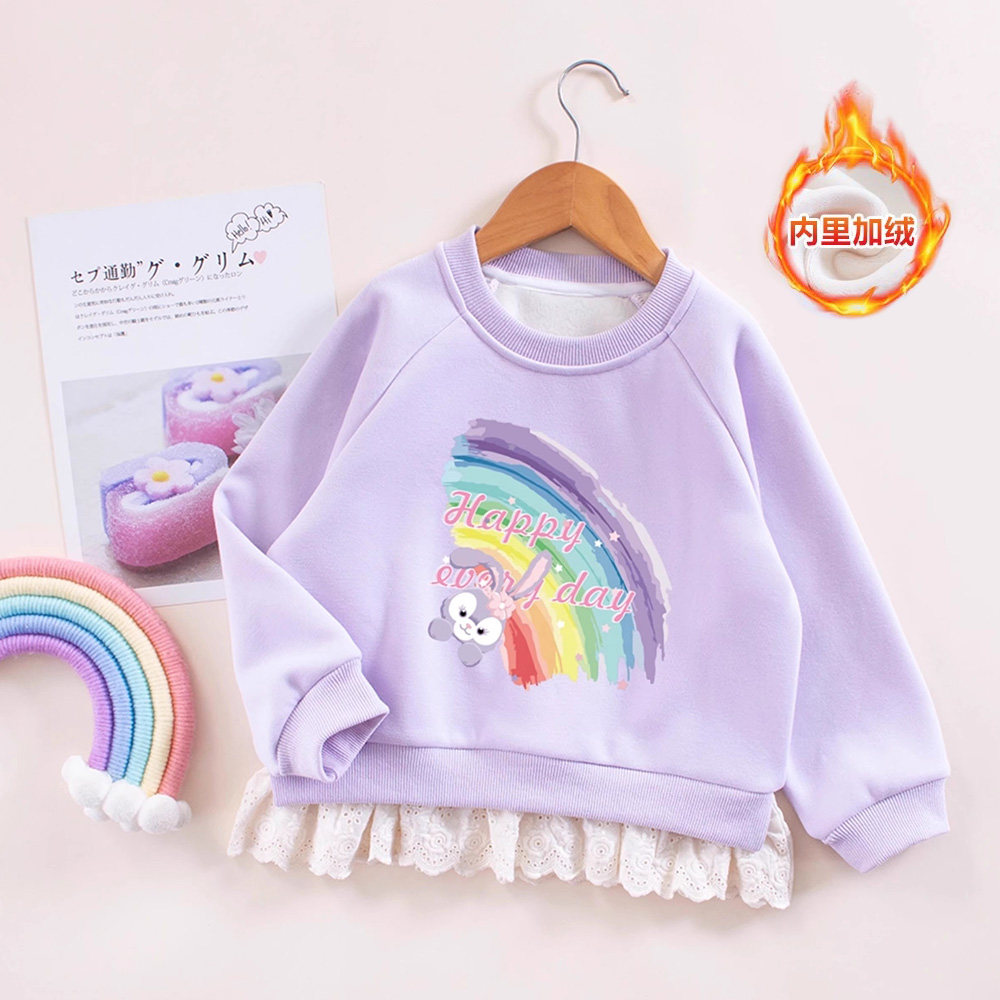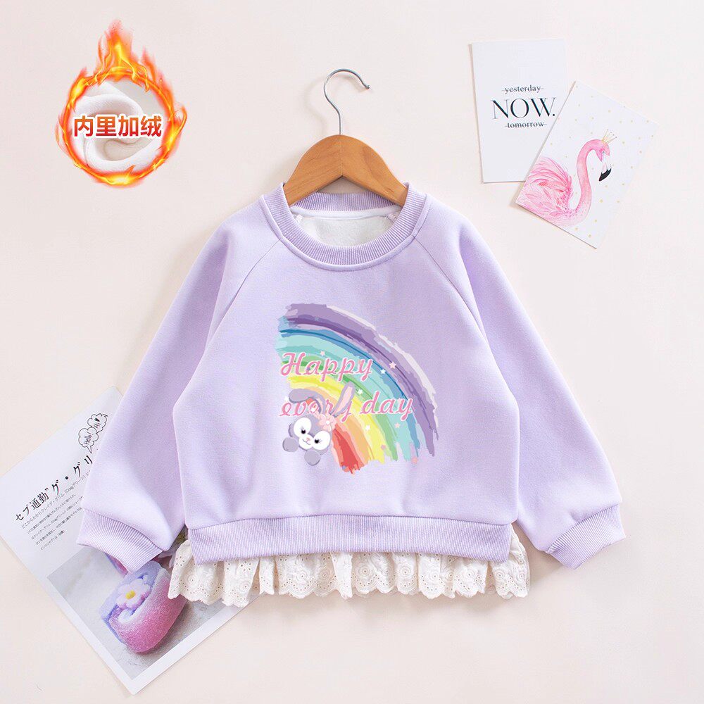 女童秋冬加绒卫衣女宝宝星黛露长袖紫色花边套头衫小童百搭上衣潮