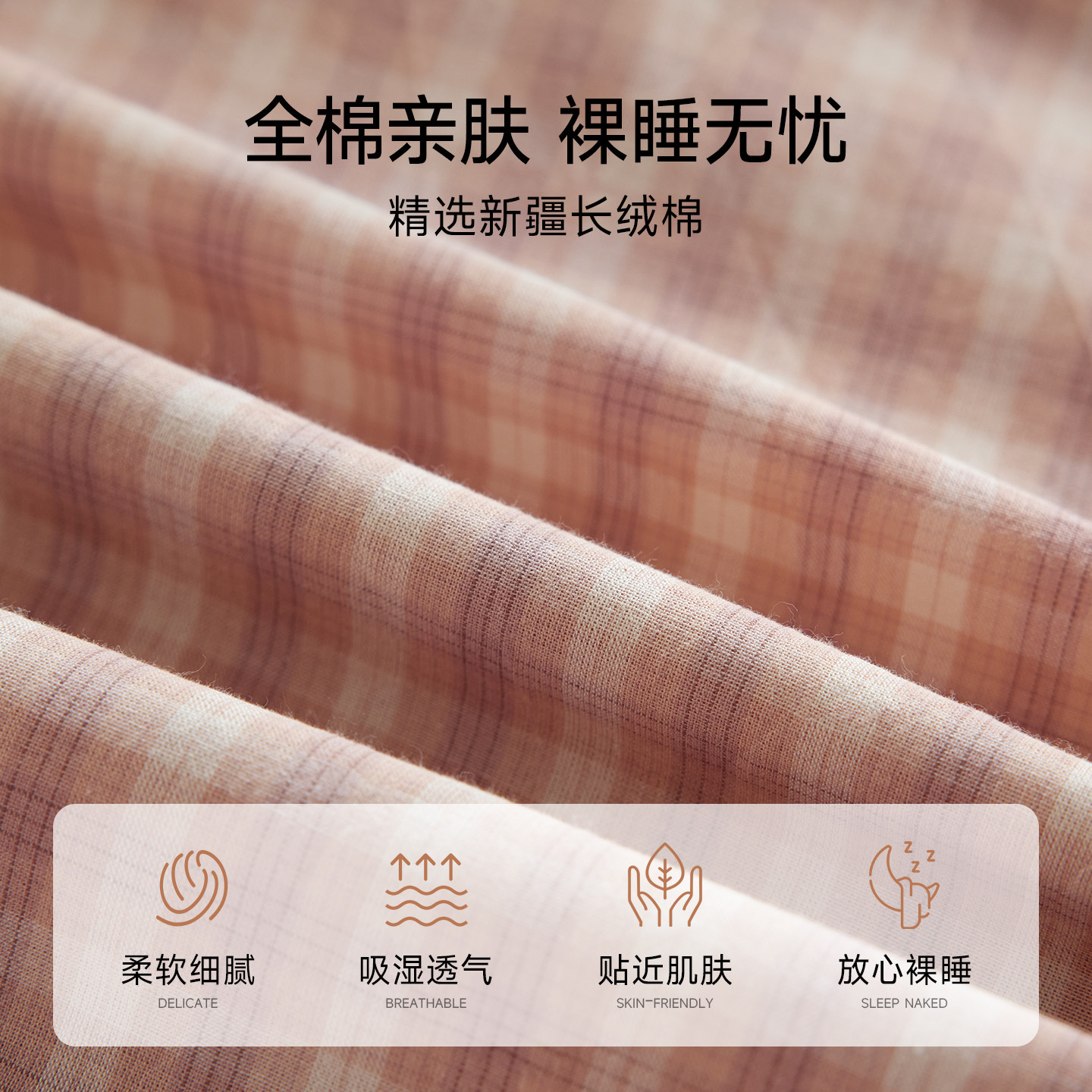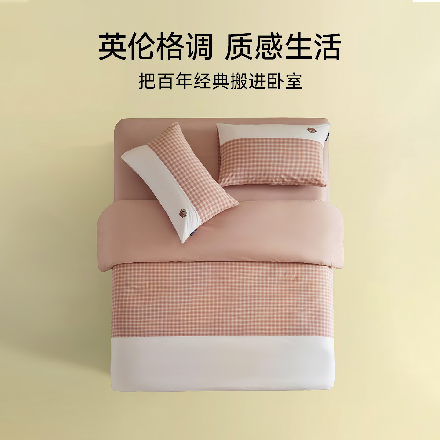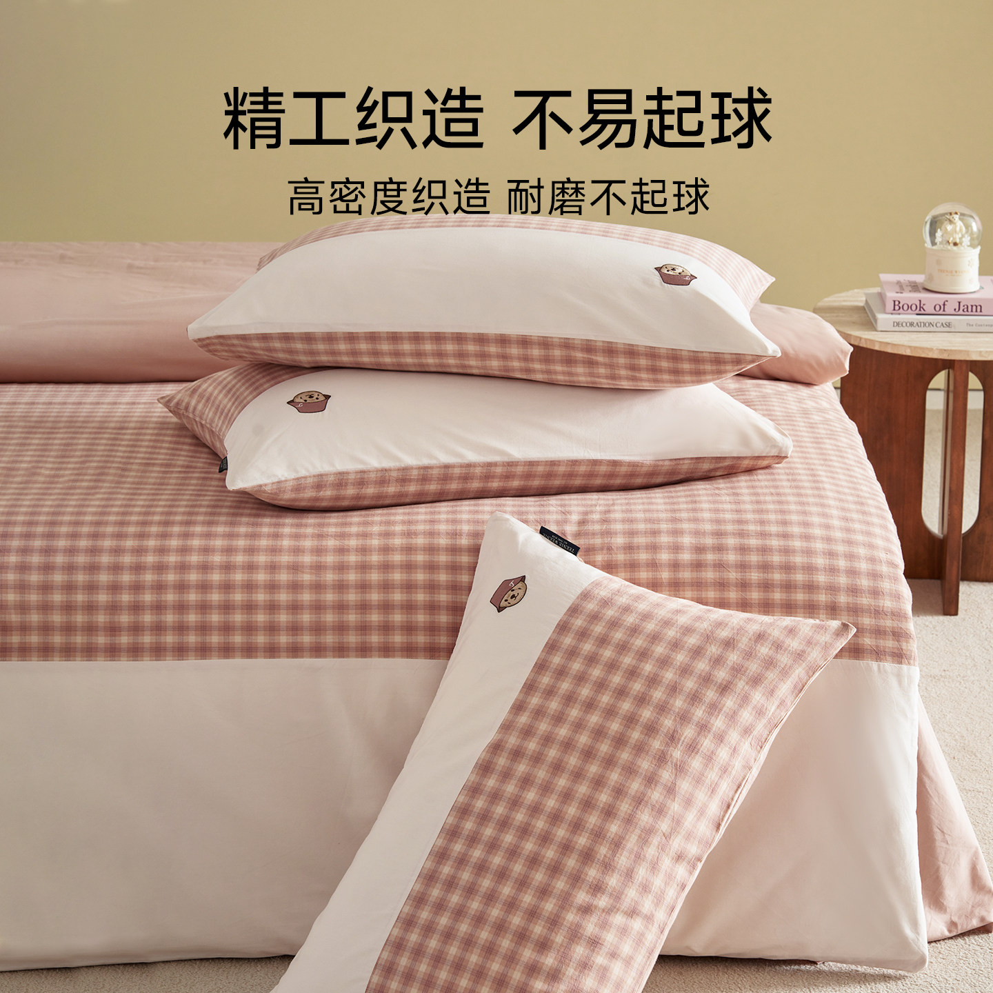 TeenieWeenie粉色纯棉四件套全棉色织水洗棉格子被套罩1.8m床笠款
