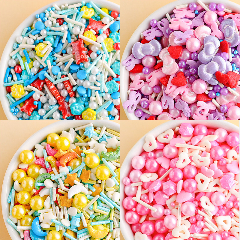儿童节蛋糕装饰糖珠彩色小熊爱心圆圈造型糖烘焙甜品点缀装扮插件