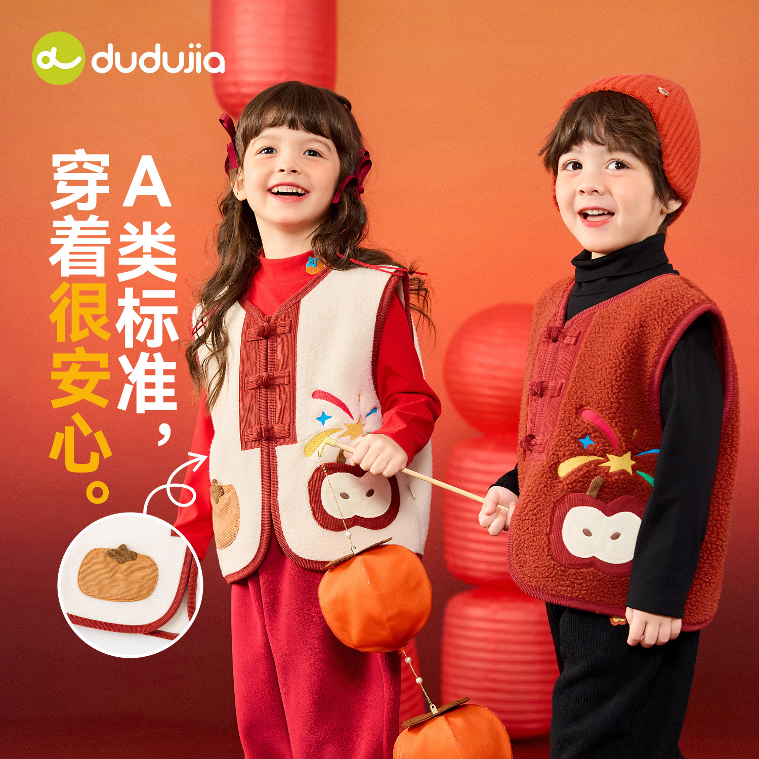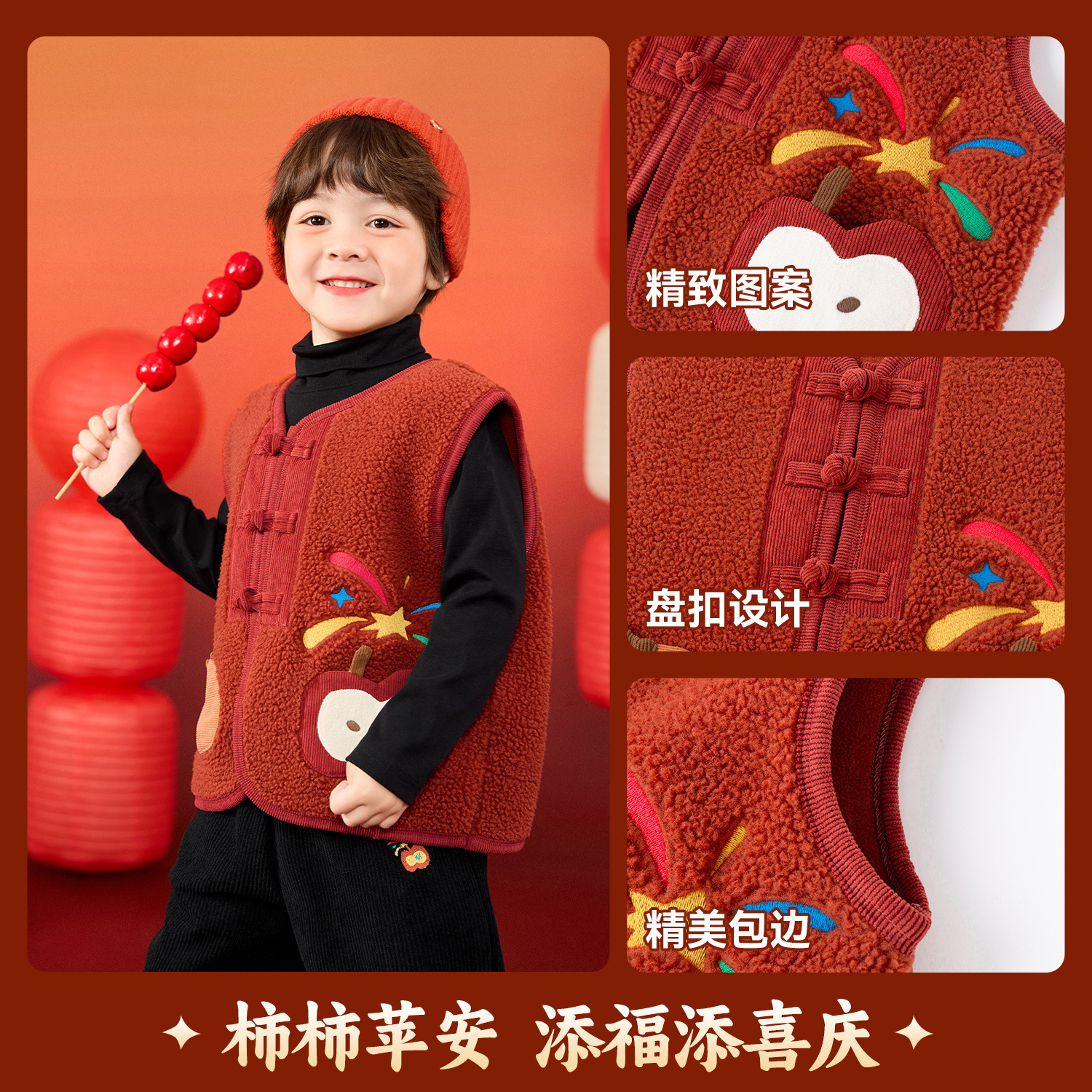 嘟嘟家儿童马甲男童女童冬季拜年服宝宝新年坎肩婴儿喜庆童装衣服