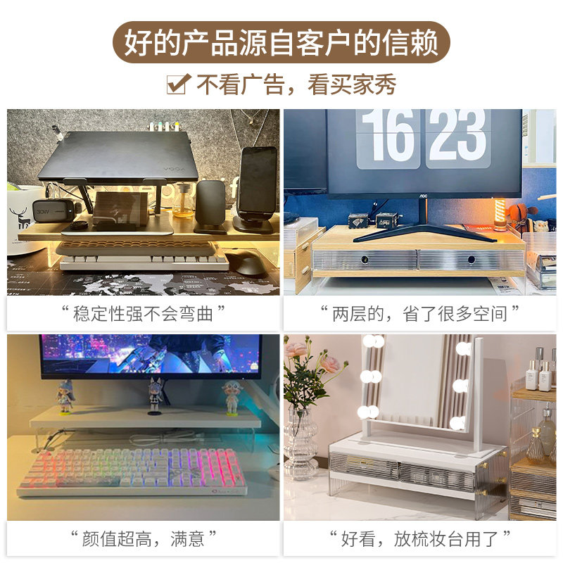 电脑显示器增高架办公室台式屏幕垫高支架子桌面亚克力悬空置物架