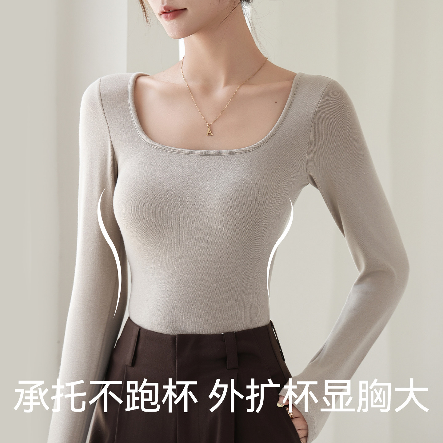 玻尿酸打底衫女款2026新款春夏季带胸垫一体内衣修身长袖T恤上衣